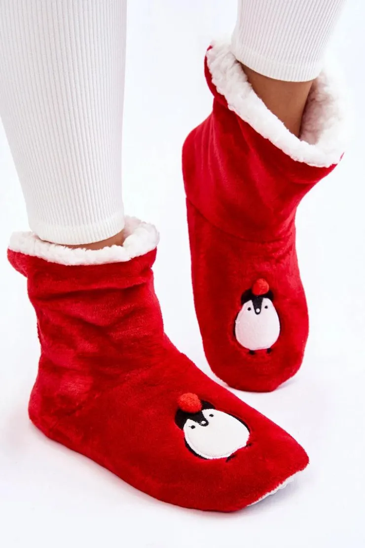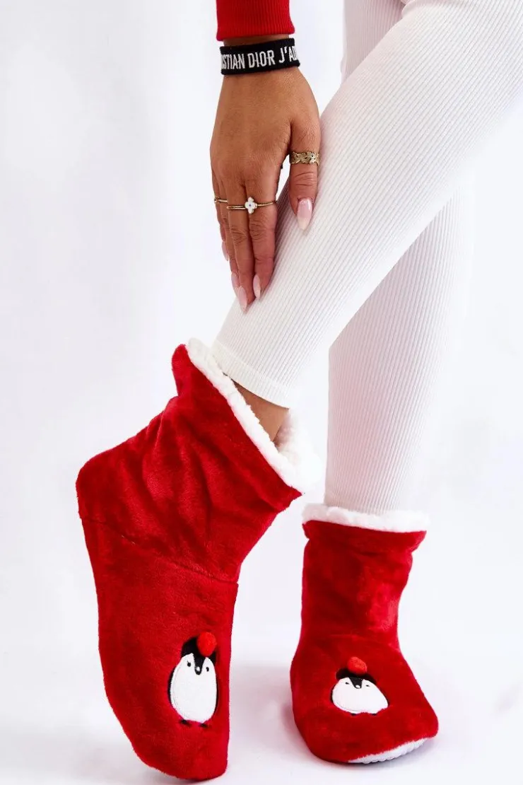 Idealne papcie damskie dla każdego zmarzlucha! Zostały wykonane z miękkiego materiału tekstylnego. Wewnątrz posiadają ocieplenie w postaci miękkiego kożuszka. Podeszwa z gumowego tworzywa z wypustkami jest antypoślizgowa. Papcie te świetnie izolują przed zimnem. Niezwykle wygodne i komfortowe podczas użytkowania. Ozdobione z przodu uroczym pingwinkiem. Przy wyborze rozmiaru prosimy kierować tabelą rozmiarów.