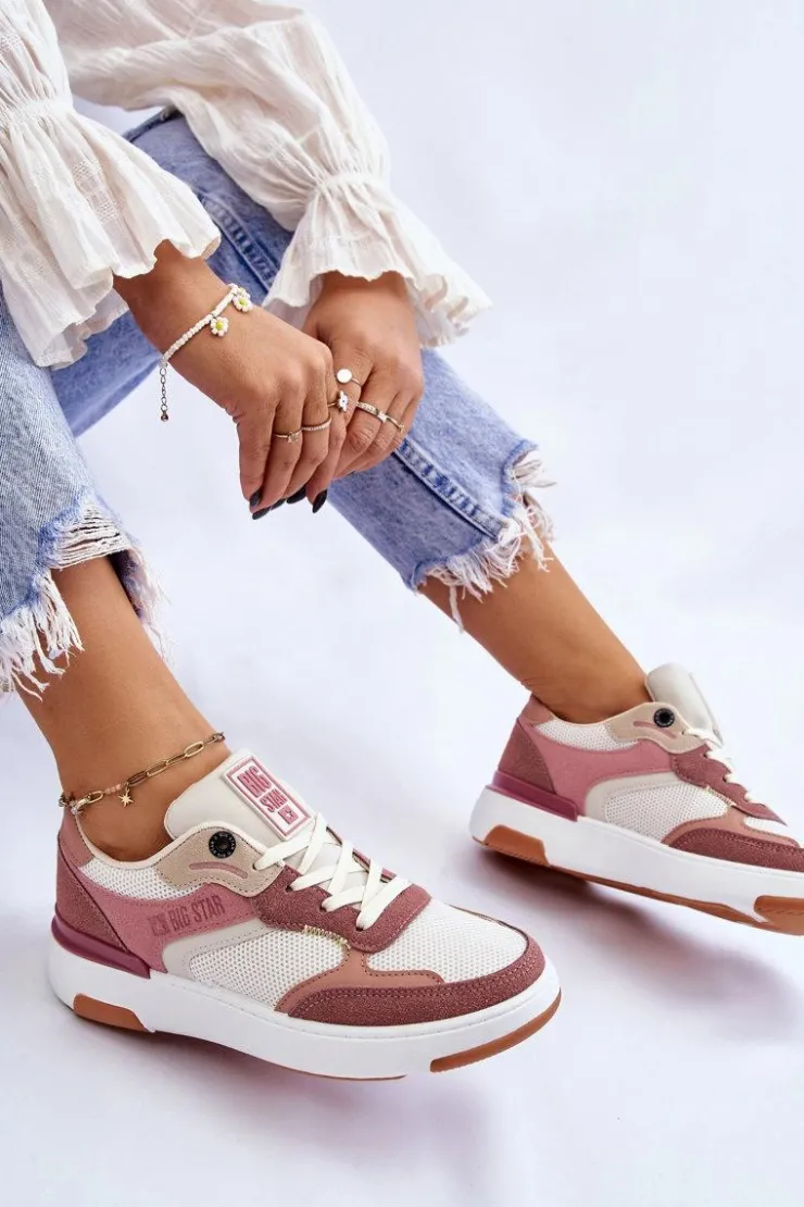 Modne, damskie buty sportowe od marki Big Star. Model ten jest idealny na spacery, na spotkanie z przyjaciółmi czy zakupy. Buty te zostały wykonane z siateczkowego materiału, eko zamszu oraz eko skóry. Posiadają miękką wkładkę z wytrzymałego i odpornego na ścieranie materiału. Osadzone na delikatnej platformie. Przy wyborze rozmiaru prosimy sugerować się tabelą rozmiarów.