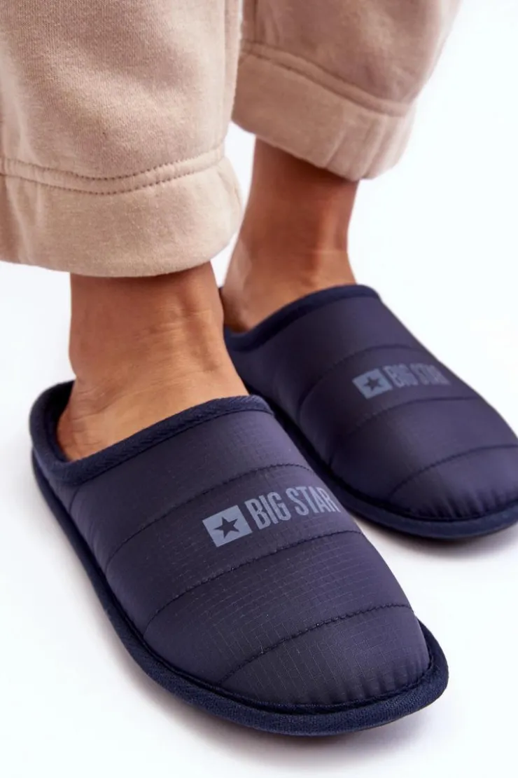 Damskie, wsuwane papcie z szerszym noskiem zapewnią wygodę podczas użytkowania. Papcie wykonane z materiału tekstylnego z przeszyciami. Na wierzchu znajduje się logo marki Big Star. Papcie zostały ocieplone w środku miękkim kocem obuwniczym. Osadzone na podeszwie wykonanej z gumowego tworzywa, która świetnie odizoluje od zimnego podłoża. Przy wyborze rozmiaru prosimy kierować tabelą rozmiarów.