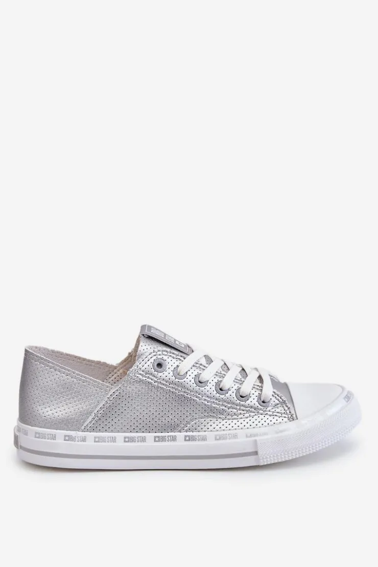 Klasyczne, damskie trampki wykonane z eko skóry z perforacją na cholewce. Model ten posiada wzmocniony nosek. Zapiętek nie jest usztywniany. Logo marki Big Star zostało umieszczone na platformie. Ten model z pewnością przypadnie do gustu miłośniczkom modowych nowinek, wygody i komfortowego użytkowania. Koniecznie powinnaś je mieć! Przy wyborze rozmiaru prosimy sugerować się tabelą rozmiarów.