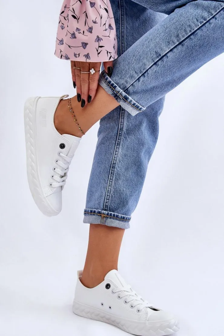 Niskie, damskie trampki marki Big Star. Cholewka została wykonana z materiałów syntetycznych pochodzących z recyklingu. Buty posiadają zaokrąglony, wzmocniony nosek oraz usztywniany zapiętek. Model ten posiada sznurowanie pozwalające na odpowiednie dopasowanie obuwia do tęgości nogi. Dodatkowo tenisówki posiadają antypoślizgową, gumową podeszwę. Zostały osadzone na platformie z ozdobnym warkoczem. Przy wyborze rozmiaru prosimy sugerować się tabelą rozmiarów.