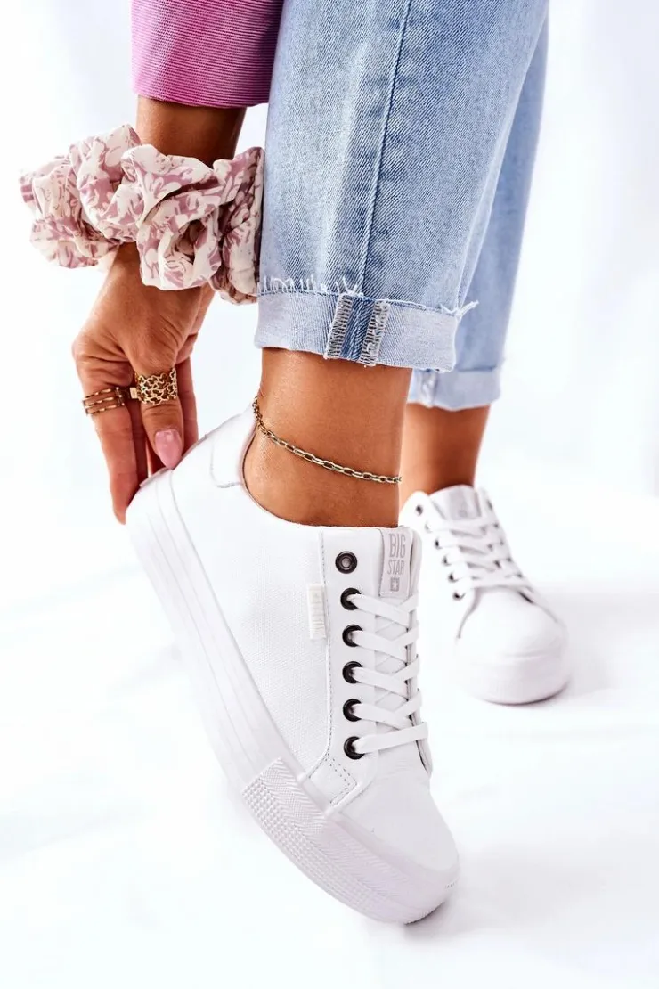 Klasyczne damskie trampki na grubej podeszwie, to kolejna propozycja od marki Big Star. Cholewka wykonana z materiału tekstylnego świetnie komponuje się z wieloma stylizacjami. Antypoślizgowa podeszwa zapewni nam bezpieczeństwo na wielu nawierzchniach. Koniecznie sprawdź całą naszą kolekcję butów BIG STAR. Przy wyborze rozmiaru prosimy sugerować się tabelą rozmiarów.