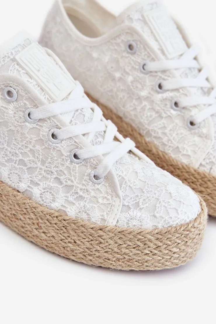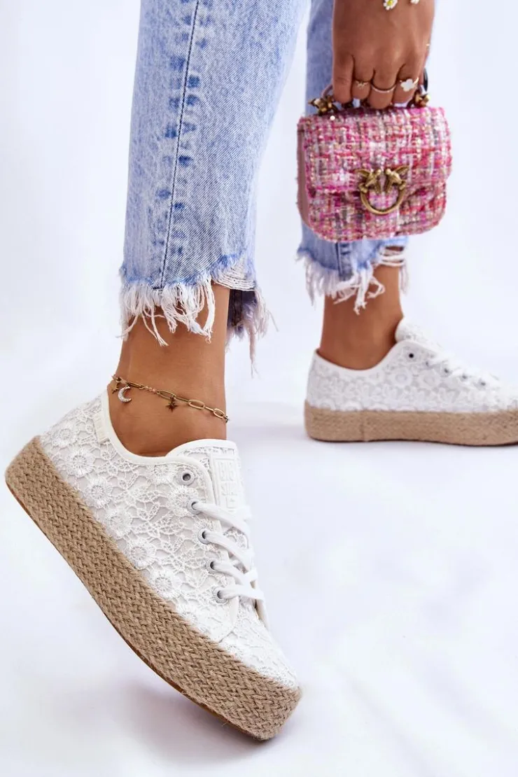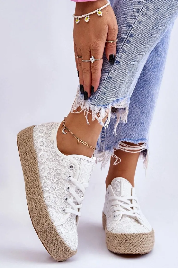 Damskie trampki polskiej marki Big Star zostały wykonane z materiału tekstylnego i dodatkowo ozdobione haftami. Buty te posiadają miękką, materiałową wkładkę oraz antypoślizgową podeszwę wykonaną z gumowego tworzywa. Trampki zostały osadzone na platformie ozdobionej jutowym warkoczem. Koniecznie sprawdź całą naszą kolekcję butów BIG STAR.Przy wyborze rozmiaru prosimy sugerować się tabelą rozmiarów.