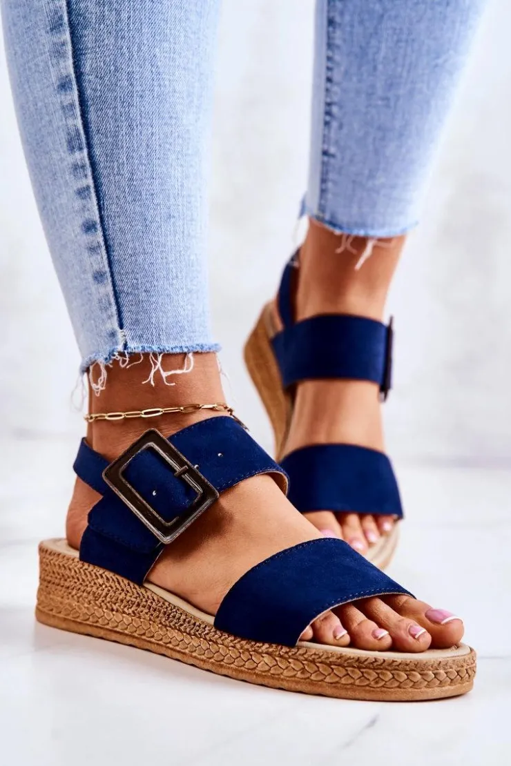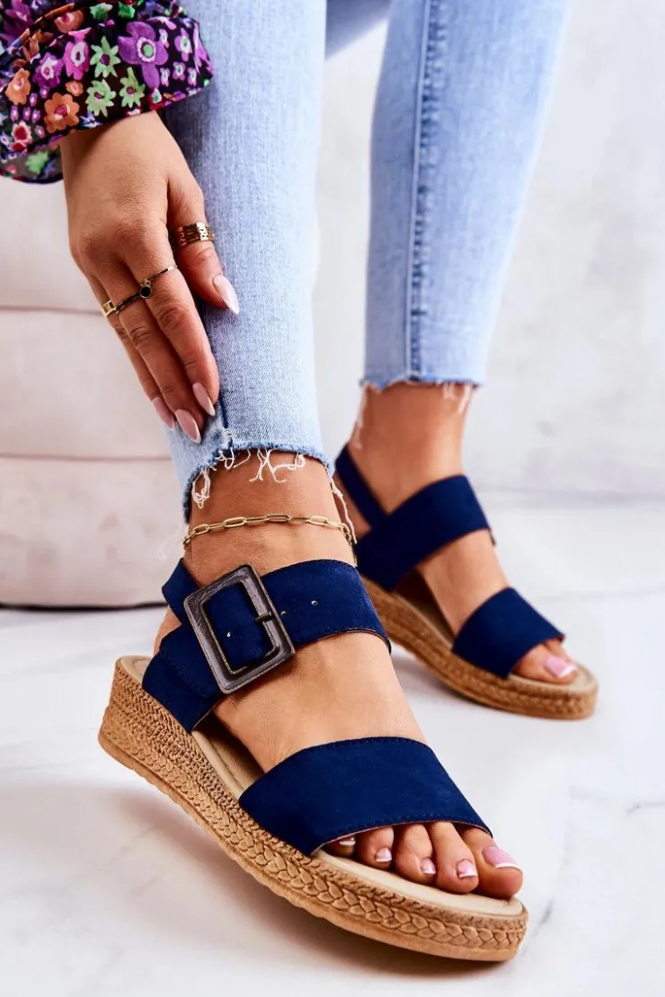 Świetne sandałki damskie wykonane z eko zamszu. Posiadają regulowany pasek zapinany wokół kostki na sprzączkę. Wkładka miękka, wykonana z eko skóry. Buty osadzone na niskim koturnie i delikatnej platformie, które są przyozdobione tłoczonym wzorem oraz brokatem. Model, który będzie pasować do wielu stylizacji. Idealne na lato, przewiewne i wygodne. Koniecznie sprawdź także pozostałe sandały marki Big Star dostępne w naszej ofercie! Podczas wyboru rozmiaru prosimy sugerować się tabelą rozmiarów.