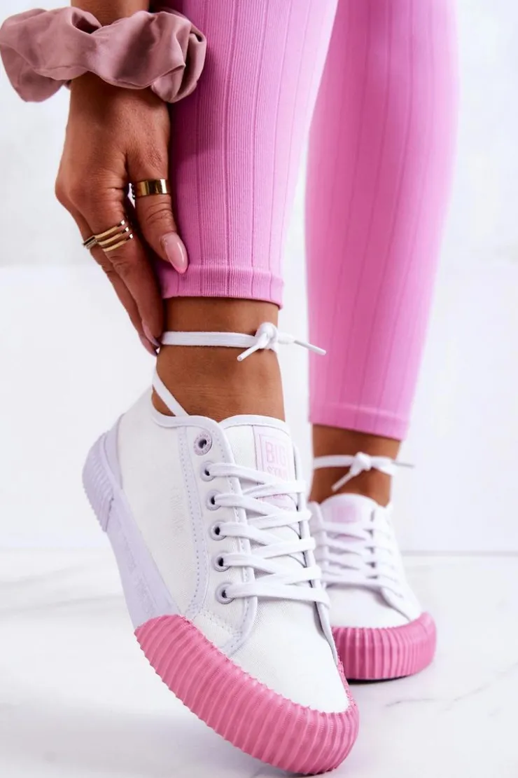 Klasyczne tenisówki wykonane zostały z materiału tekstylnego. Podeszwa została wzmocniona z przodu oraz z tyłu gumowym tworzywem. Klasyczny, wiązany model. Miękka, materiałowa wkładka zapewni komfort przez cały dzień. Buty posiadają antypoślizgową podeszwę. Sprawdź także pozostałe modele marki Big Star! Przy wyborze rozmiaru prosimy sugerować się tabelą rozmiarów.