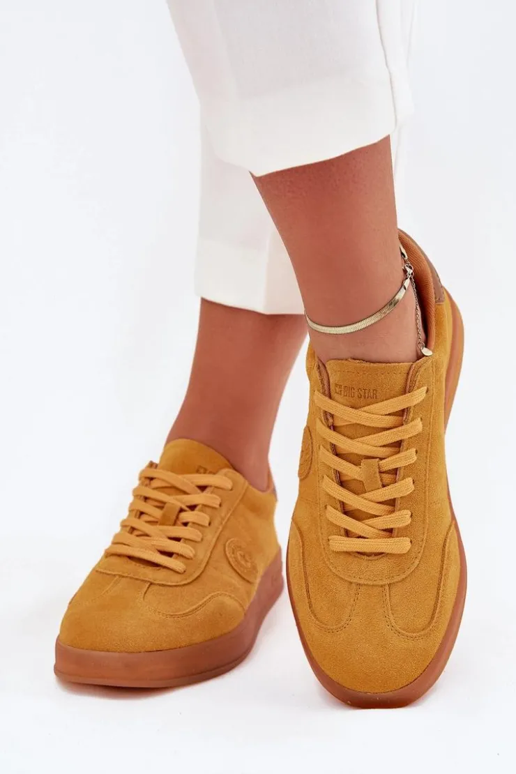 Buty sportowe damskie od marki Big Star, wykonane z wysokiej jakości naturalnego zamszu, to połączenie stylu i funkcjonalności. Z boku cholewki znajduje się charakterystyczne logo marki, które podkreśla ich unikalny design. Model posiada wkładkę HI-POLY SYSTEM, która zapewnia odporność na ścieranie oraz odkształcenia, gwarantując długotrwałą trwałość. Dodatkowo wkładka doskonale absorbuje wilgoć i zapewnia świetną amortyzację wstrząsów, co sprawia, że buty są wyjątkowo komfortowe, a jednocześnie wytrzymałe, idealne do codziennych aktywności. Przy wyborze rozmiaru prosimy sugerować się tabelą rozmiarów.