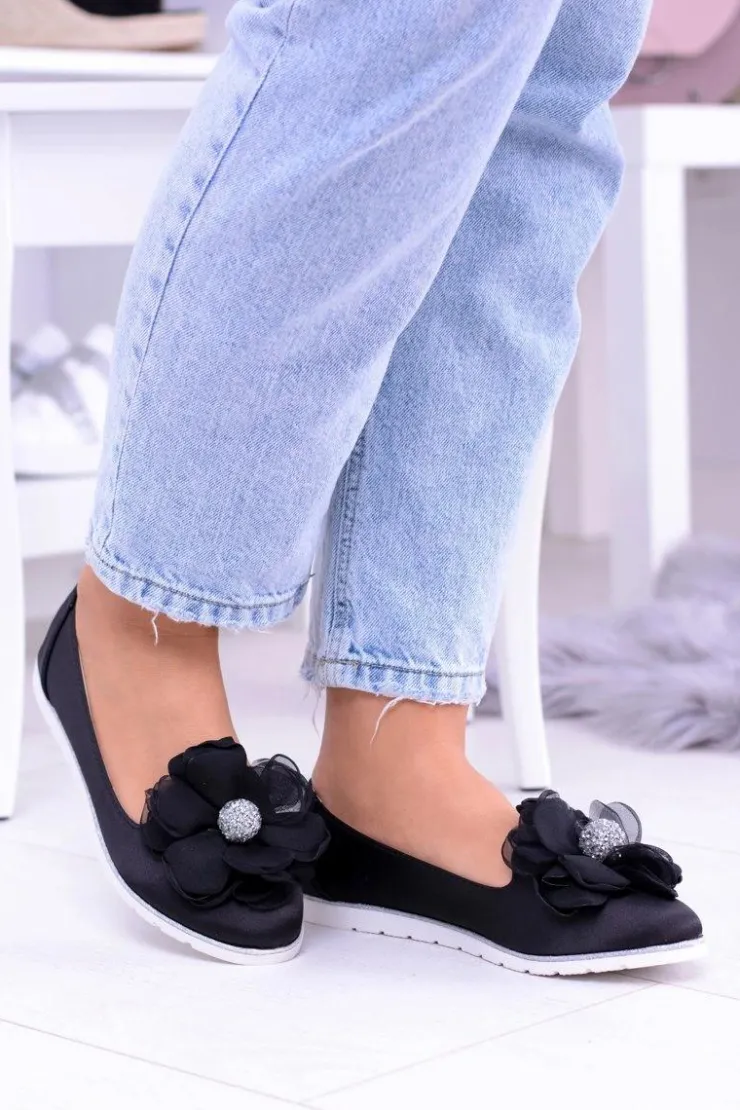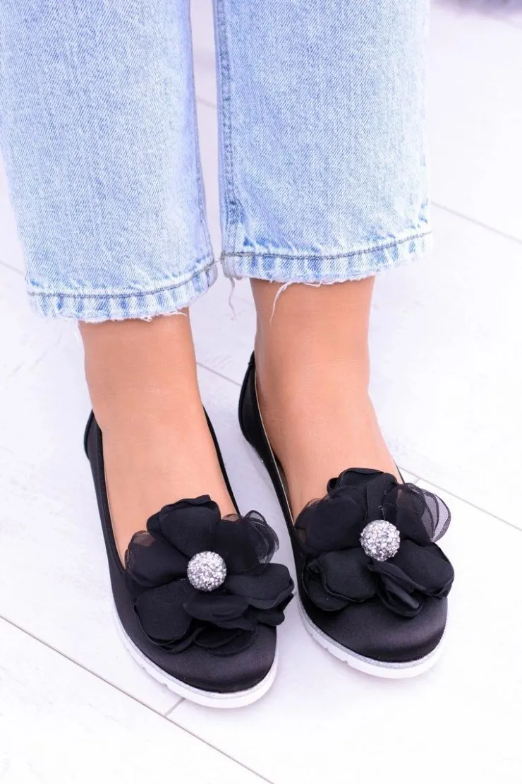 Damskie Boto Aksamitne Baleriny Z Dużym Kwiatem Fumiko