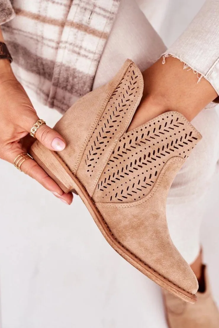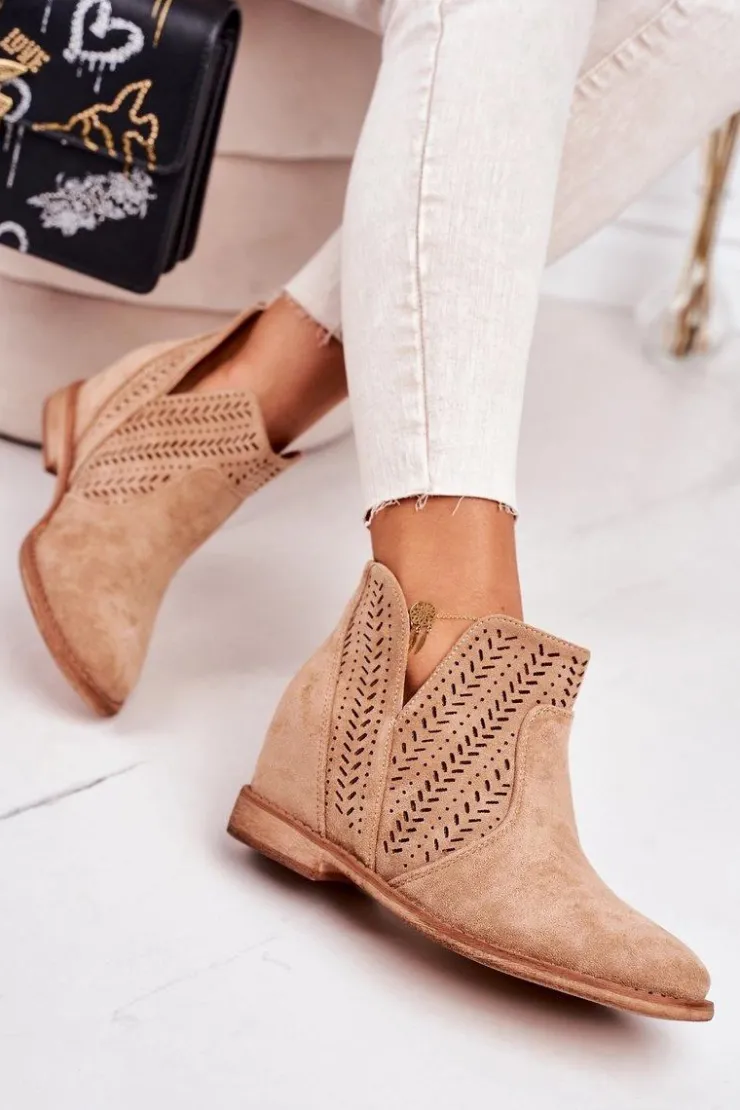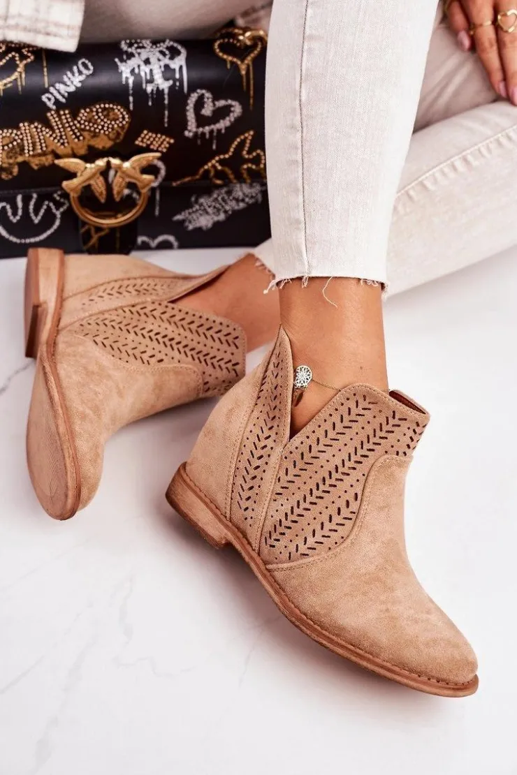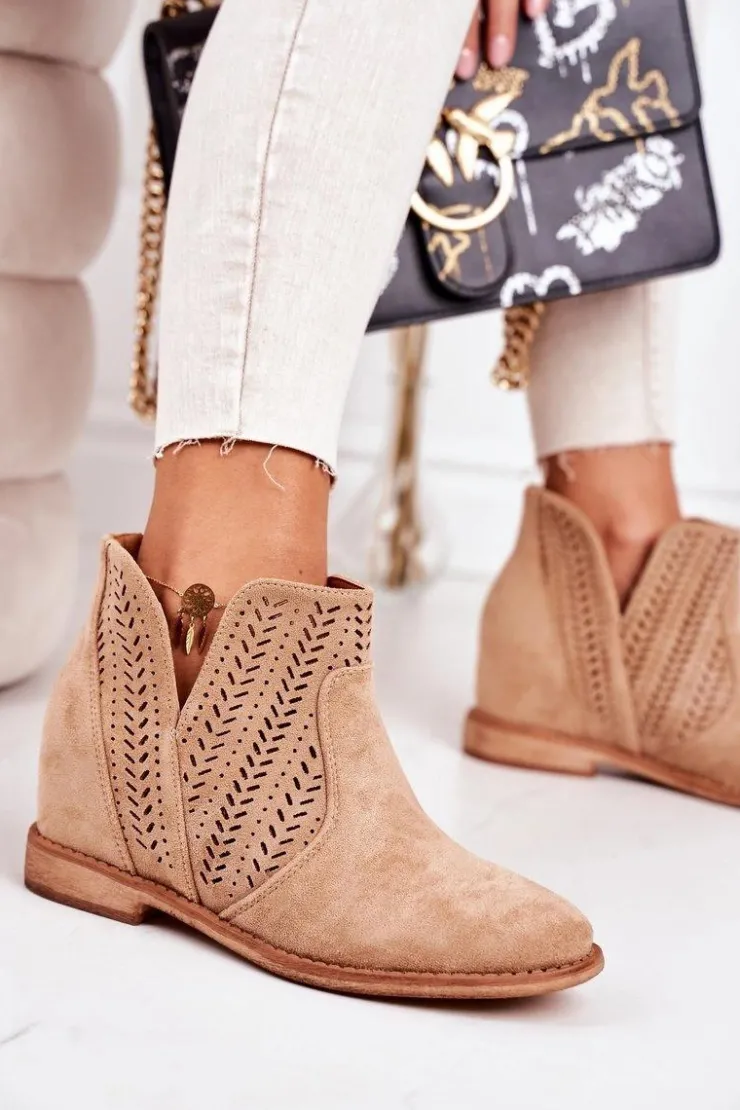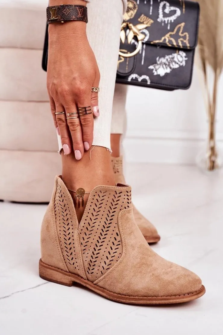 Wiosenne ażurowe botki na ukrytym koturnie. Buty wykonane są z eko zamszu. Botki są bardzo wygodne dzięki miękkiej wkładce ze skóry naturalnej. Koniecznie sprawdź całą naszą kolekcję damskich botków!