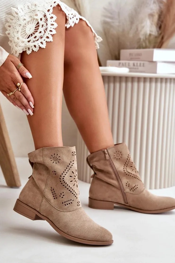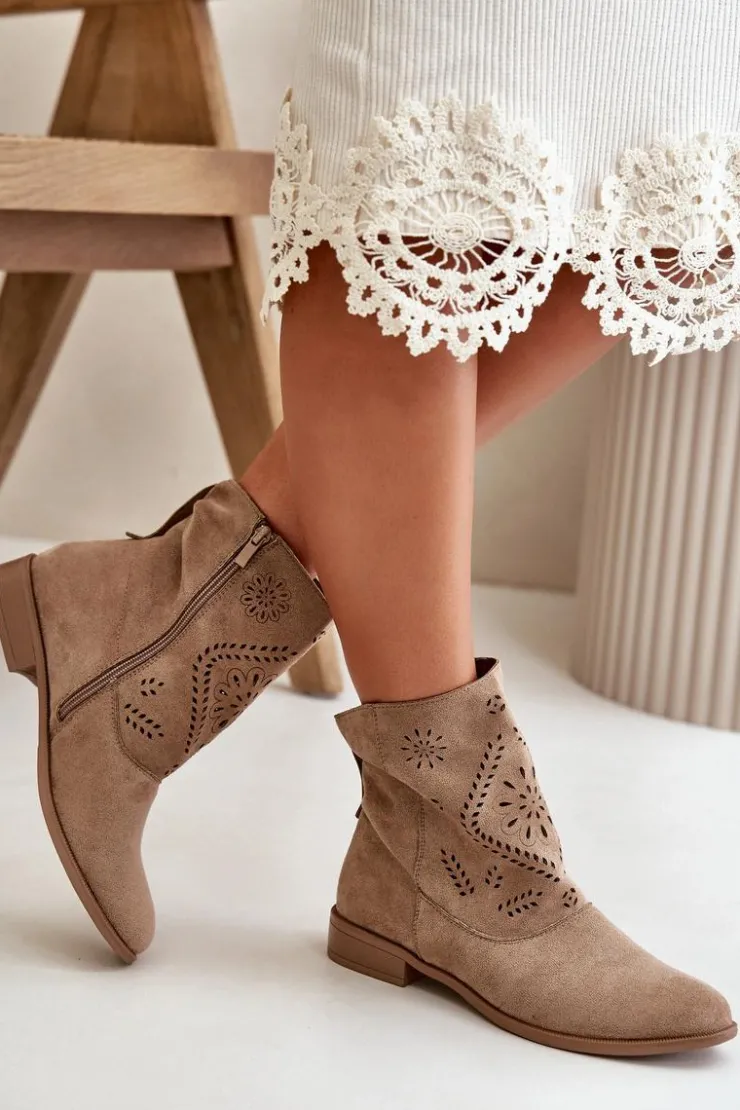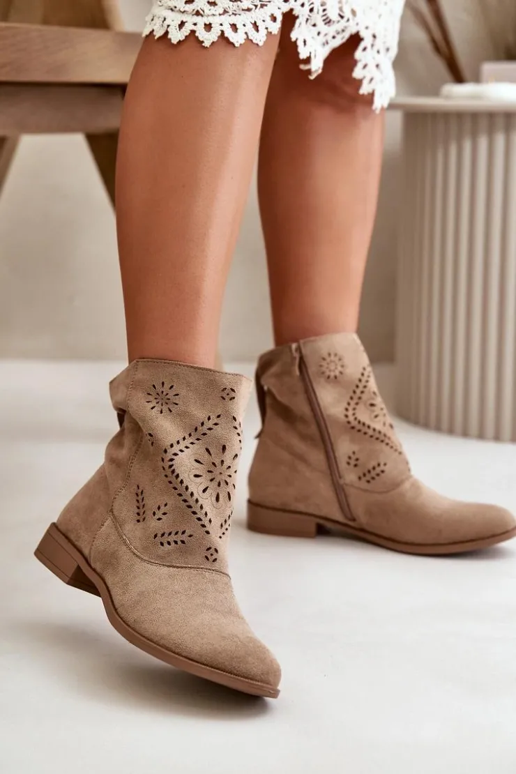 Damskie botki od marki Jezzi to stylowy i funkcjonalny wybór na różne okazje. Wykonane z dbałością o detale, charakteryzują się ażurową cholewką, która sięga za kostkę, nadając im lekkości i elegancji. Botki są zapinane na zamek, co ułatwia szybkie zakładanie i zdejmowanie, a także zapewnia pewne dopasowanie do stopy. Ażurowy wzór dodaje uroku. Wkładka z naturalnej skóry zapewni wygodę. Doskonałe do noszenia zarówno na co dzień, jak i na bardziej formalne okazje, stanowią idealne uzupełnienie wielu stylizacji. Przy wyborze rozmiaru prosimy sugerować się tabelą rozmiarów.