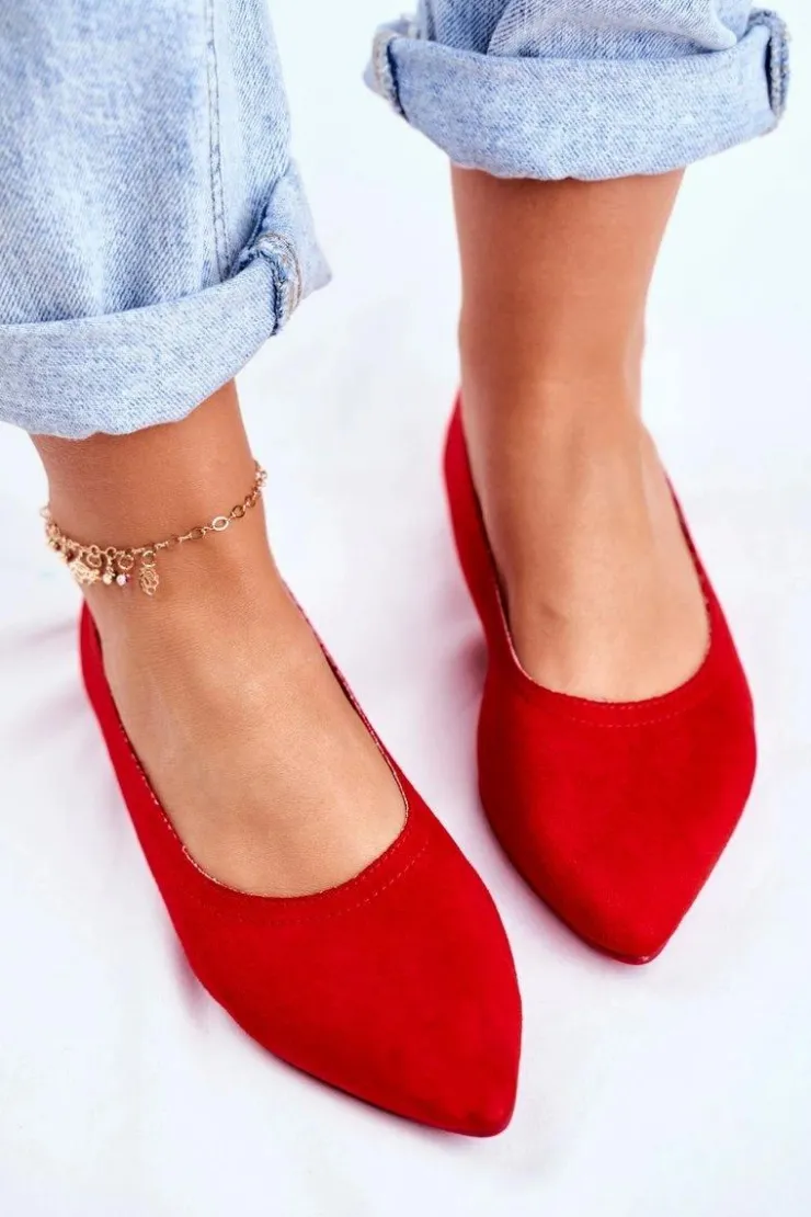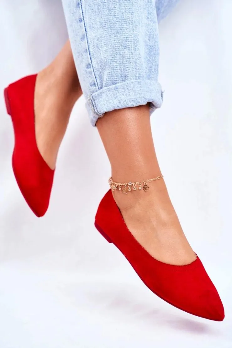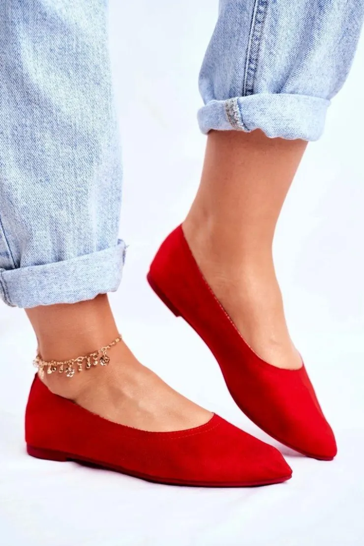 Damskie Boto Baleriny Damskie Eko-Zamsz Czerwone Bellissima