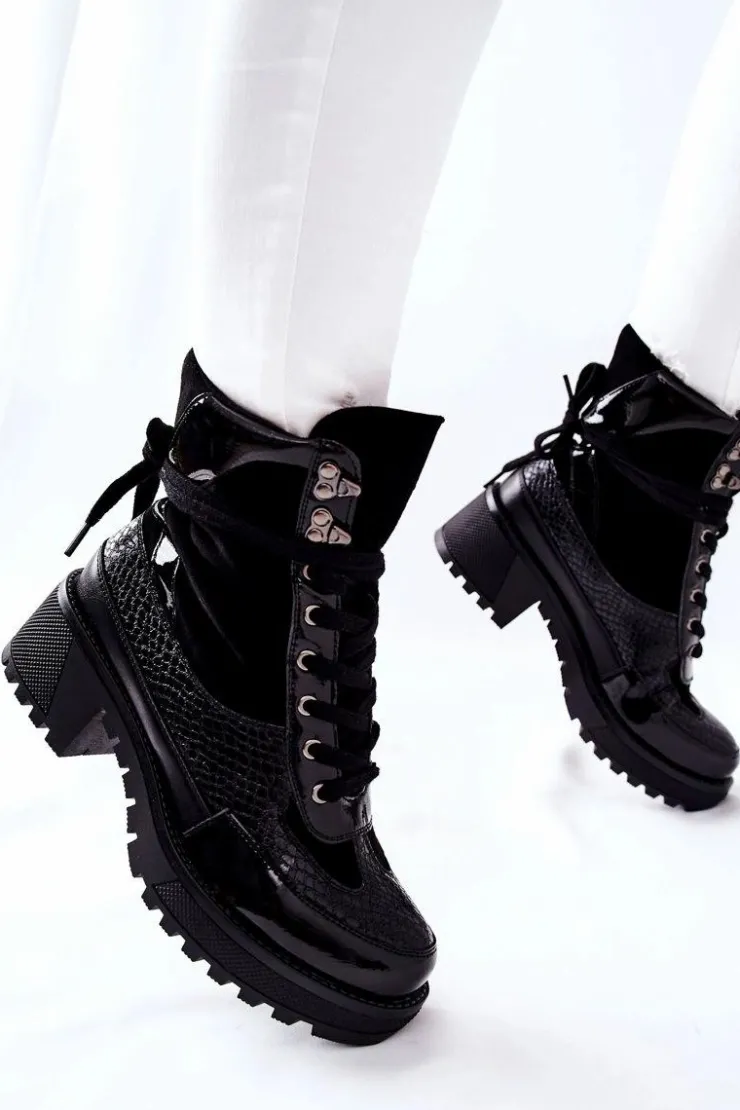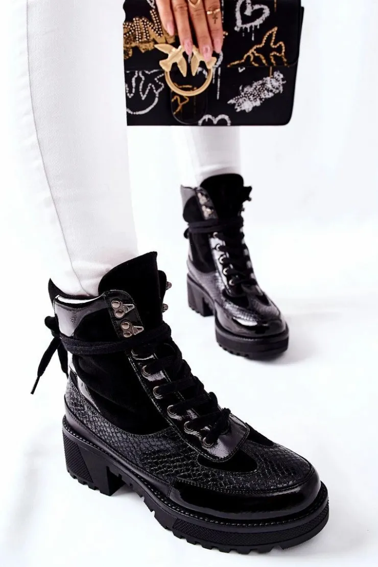 Botki wykonane z połączenia skóry ekologicznej oraz ekozamszu. Masywna platforma i dopasowana cholewka wysmuklą Twoje nogi! Przy wyborze rozmiaru prosimy sugerować się tabelą rozmiarów.