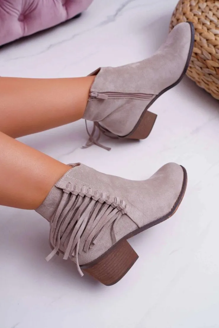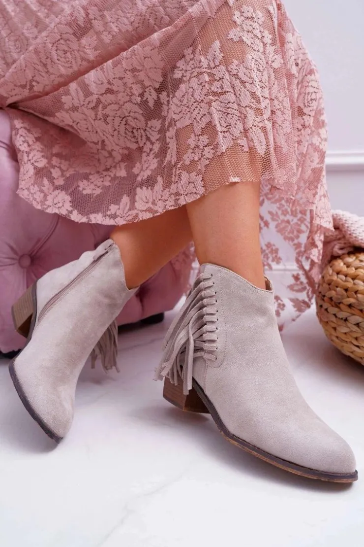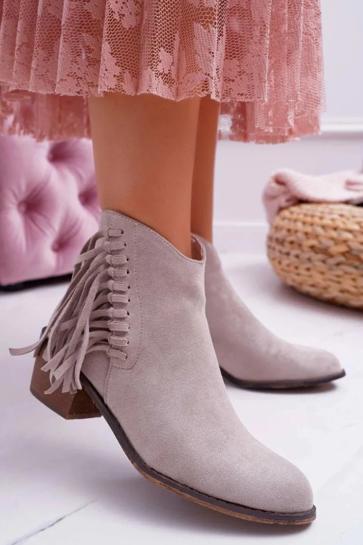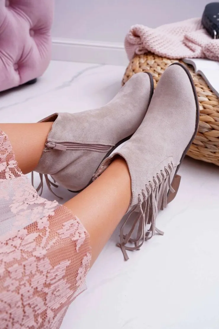 Damskie Boto Botki Damskie Kowbojki Beżowe Agnes