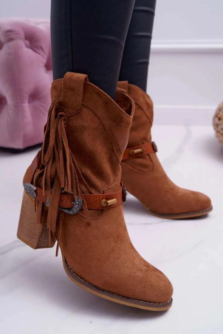 Damskie Boto Botki Damskie Kowbojki z Klamrą Brązowe Marciapo