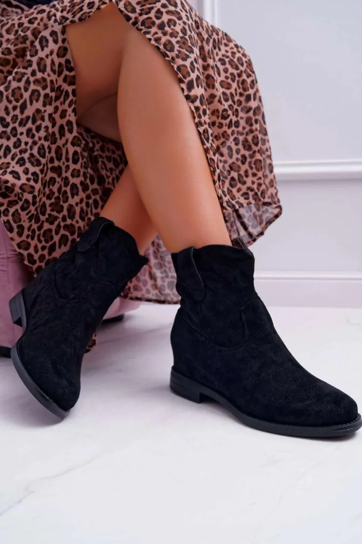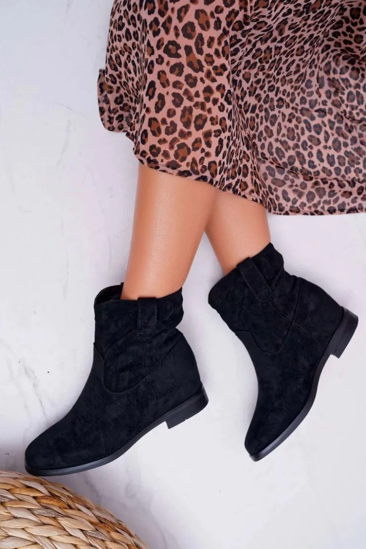 Botki w stylu kowbojek nigdy nie wychodzą z modą. Są z nami w każdym sezonie i zawsze wyglądają oszałamiająco! Delikatny płaski obcas oraz ukryty wewnątrz koturn, idealnie uniosą u wyeksponują naszą sylwetkę. Wnętrze dodatkowo ocieplone, dzięki czemu chłodne dni Nas nie zaskoczą! Przy wyborze rozmiaru prosimy sugerować się tabelą rozmiarów, która dostępna jest po najechaniu bądź kliknięciu w dany rozmiar.