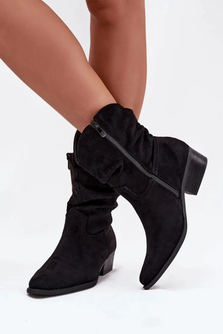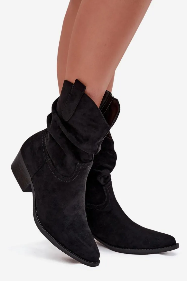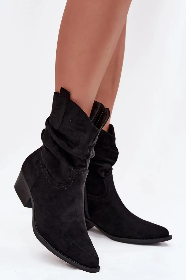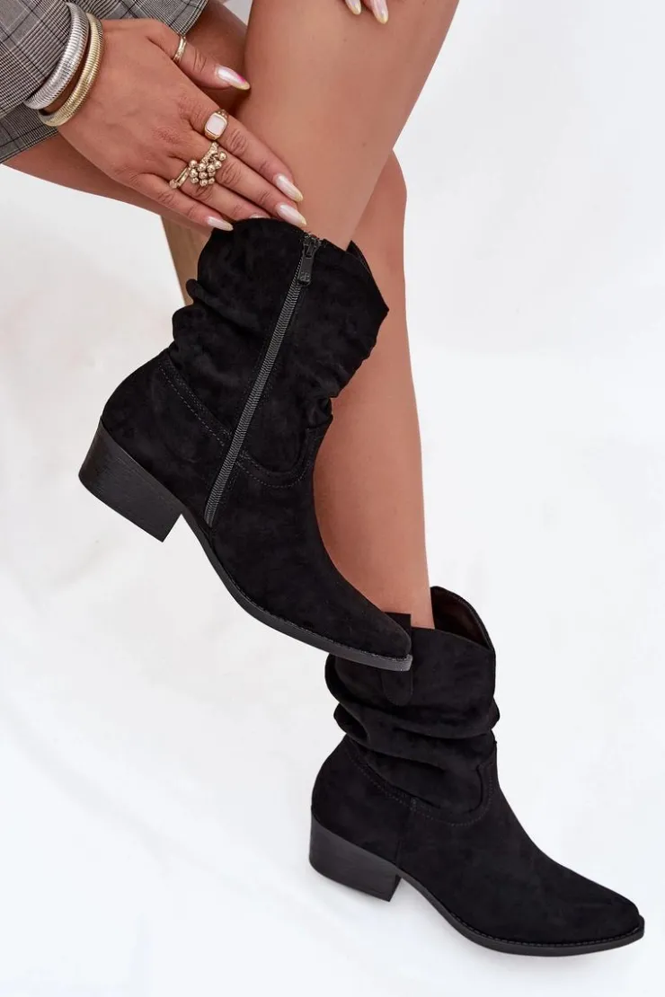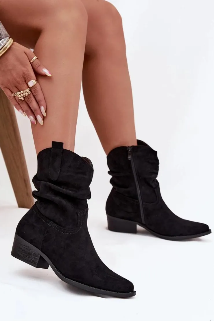Damskie Boto Botki Damskie Na Niskim Obcasie Z Marszczeniem Czarne Adena
