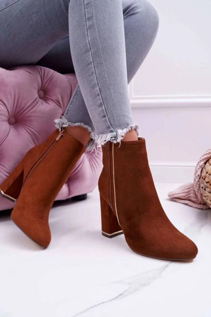 Damskie Boto Botki Damskie Na Obcasie Camel Domeno