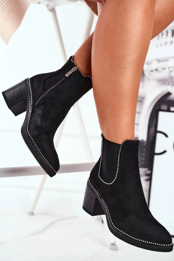 Damskie Boto Botki Damskie Na Obcasie Czarne Let Me