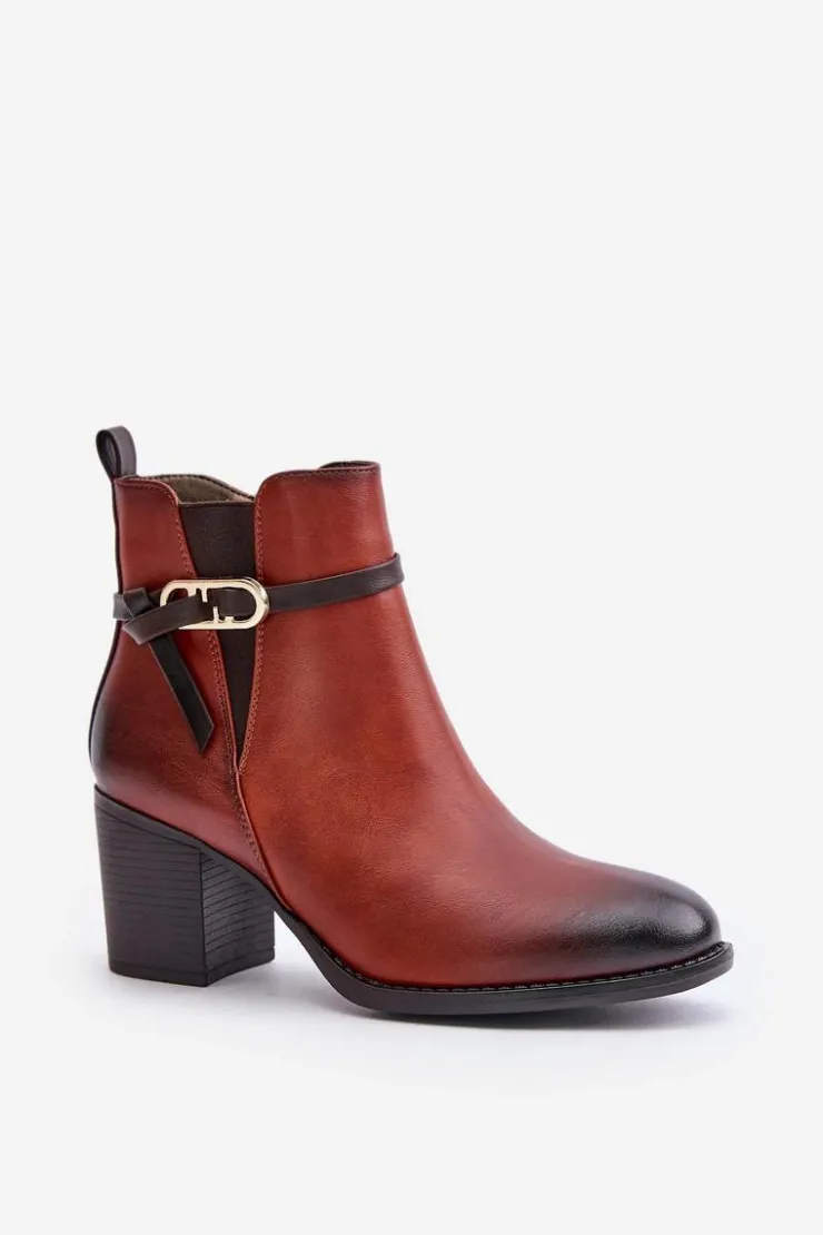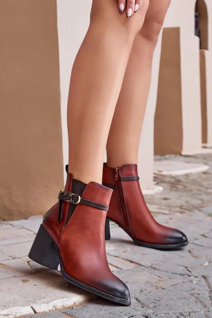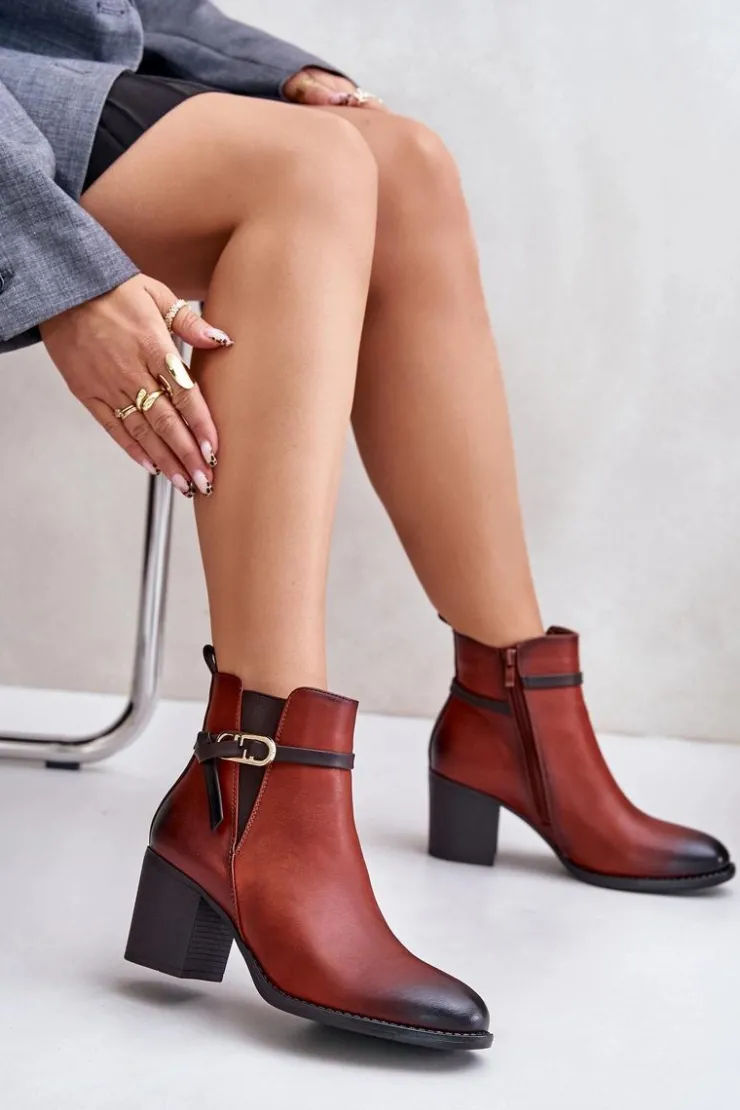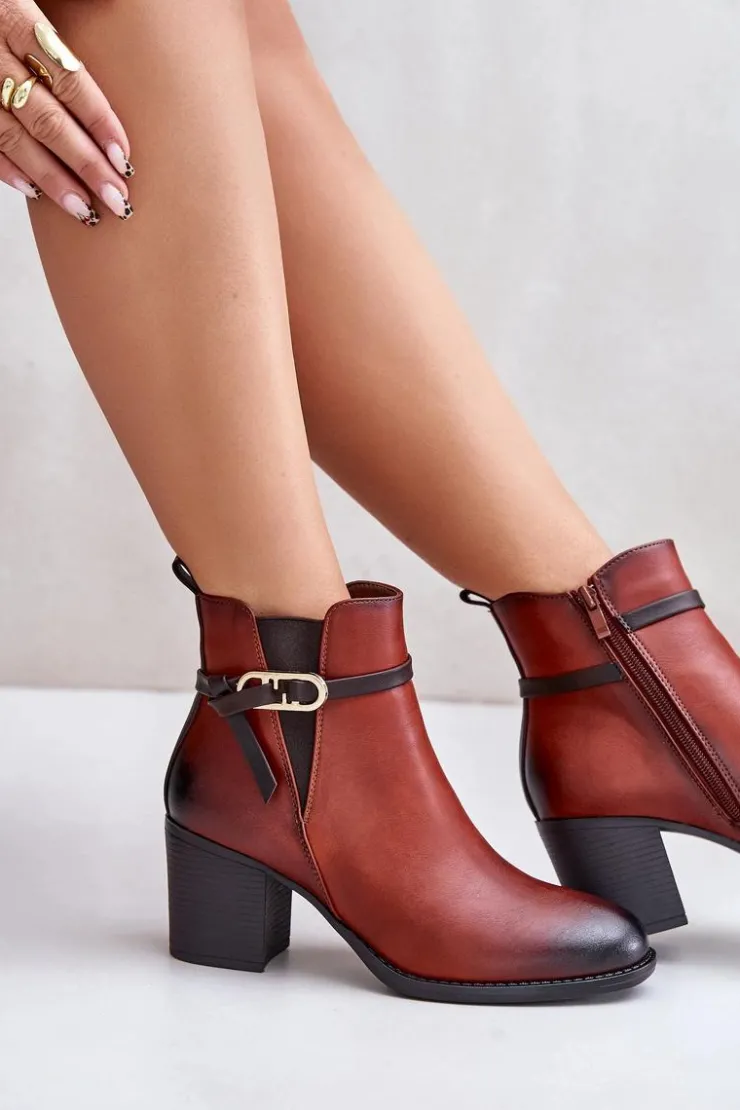 Damskie botki od marki Jezzi. Wykonane z eko skóry. Osadzone na obcasie w formie słupka. Noski zaokrąglone. Środek ocieplany kocem obuwniczym. Na cholewce pasek, który nadaje elegancji. Zapinane na zamek. Modne i wygodne, te botki to must-have w Twojej garderobie! Przy wyborze rozmiaru prosimy sugerować się tabelą rozmiarów.