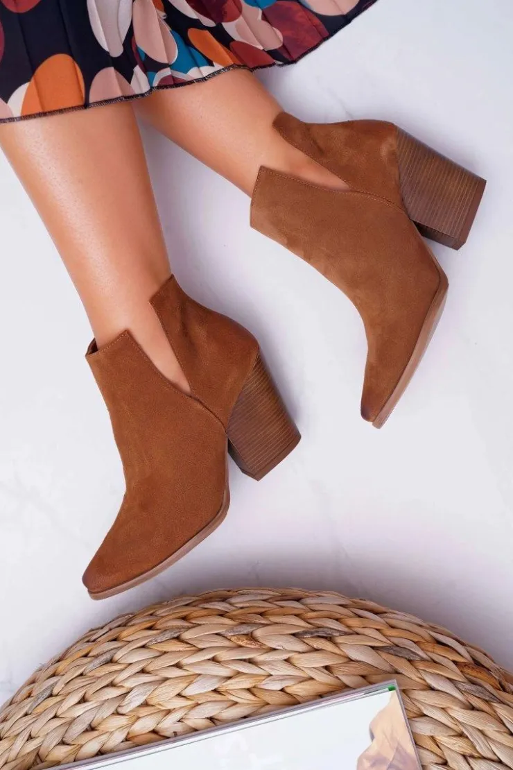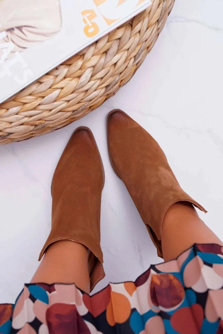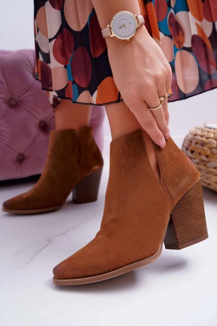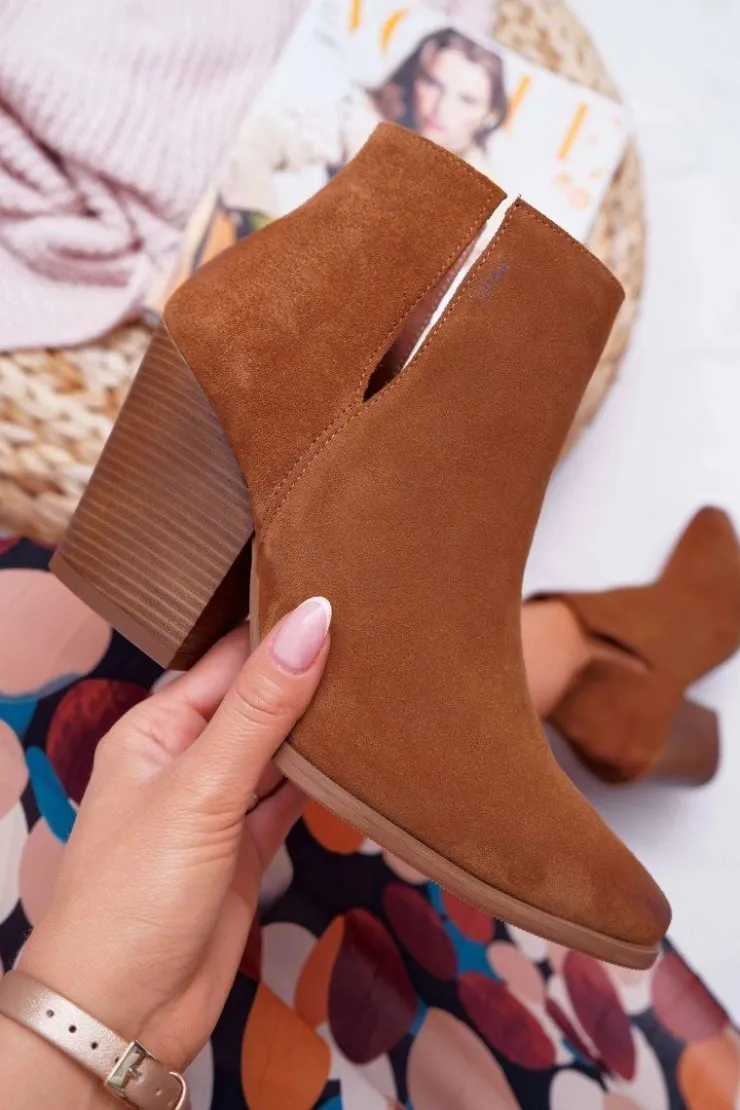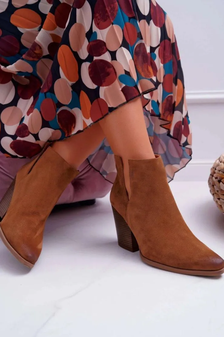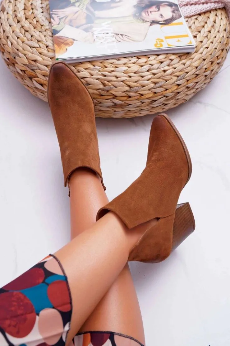 Damskie Boto Botki Damskie Na Obcasie Wiosenne Skóra Zamsz Brązowe Nicole 2430