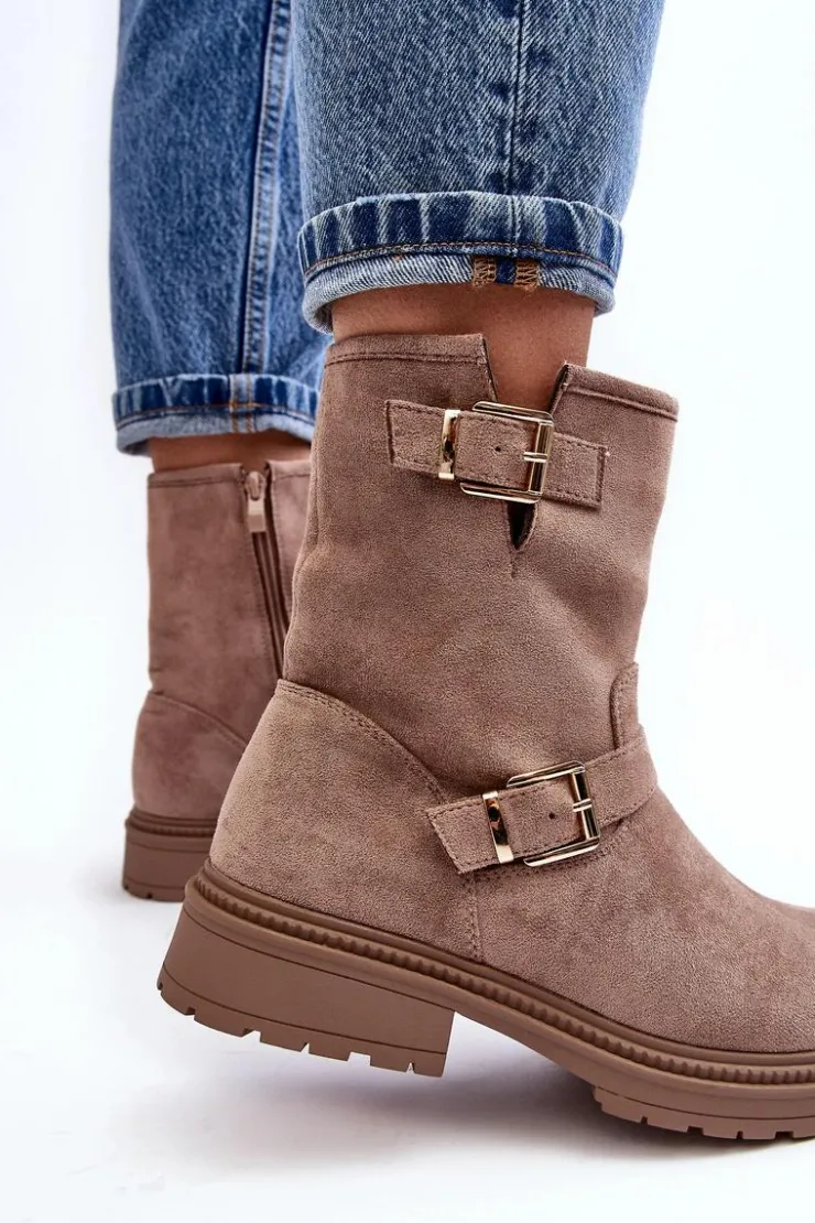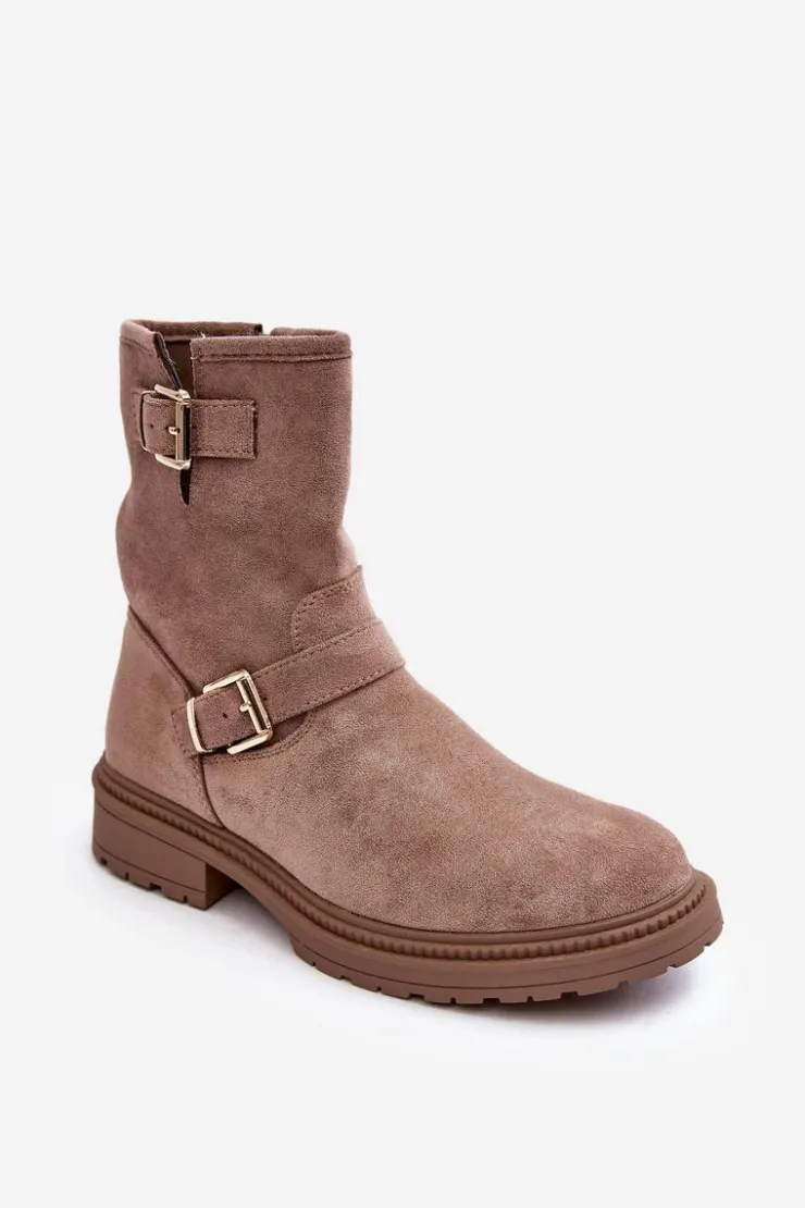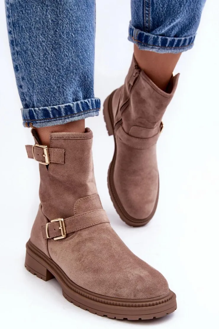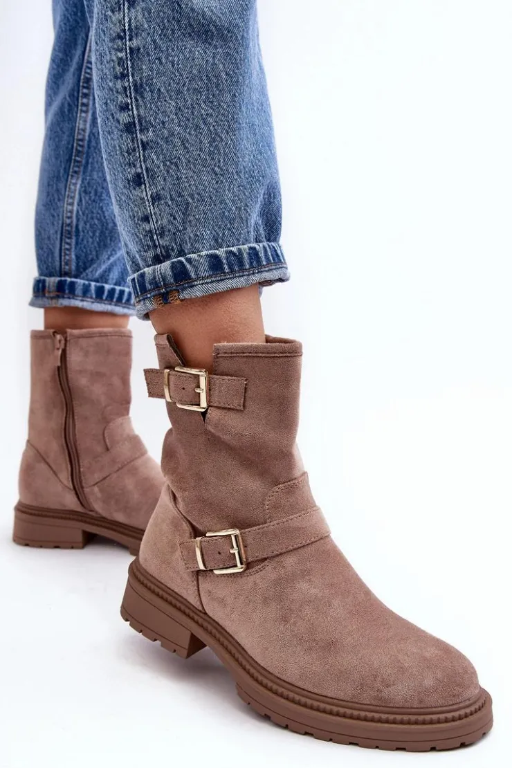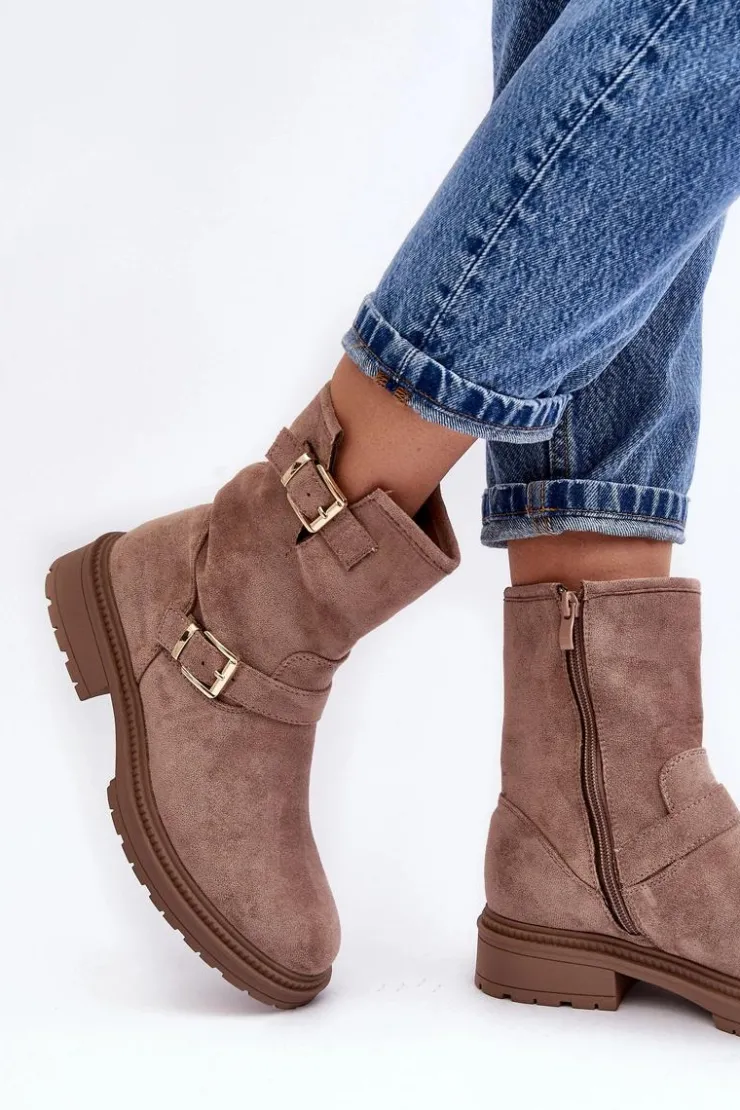 Klasyczne botki damskie z cholewką za kostkę. Osadzone na płaskim obcasie. Zapinane na suwak z boku. Noski zaokrąglone. Zapiętek usztywniony. Cholewka ozdobiona paskami z klamrą. Miękka eko skórzana wkładka zapewni komfort podczas użytkowania. Idealne do wielu jesiennych stylizacji! Przy wyborze rozmiaru prosimy sugerować się tabelą rozmiarów.