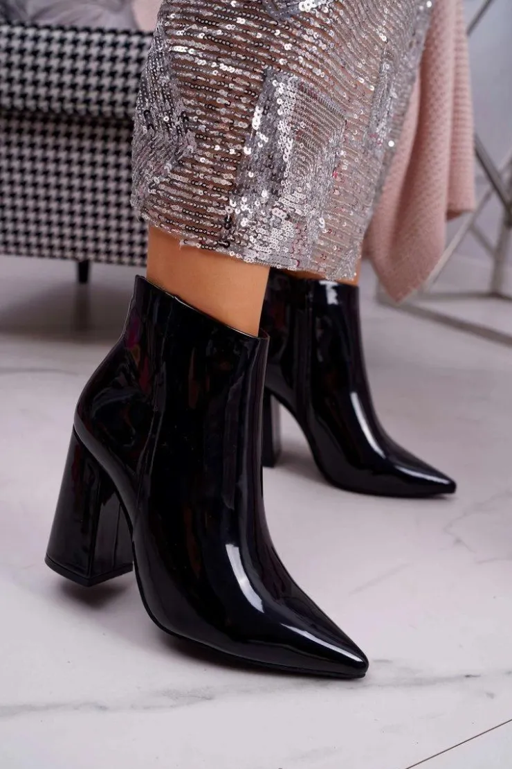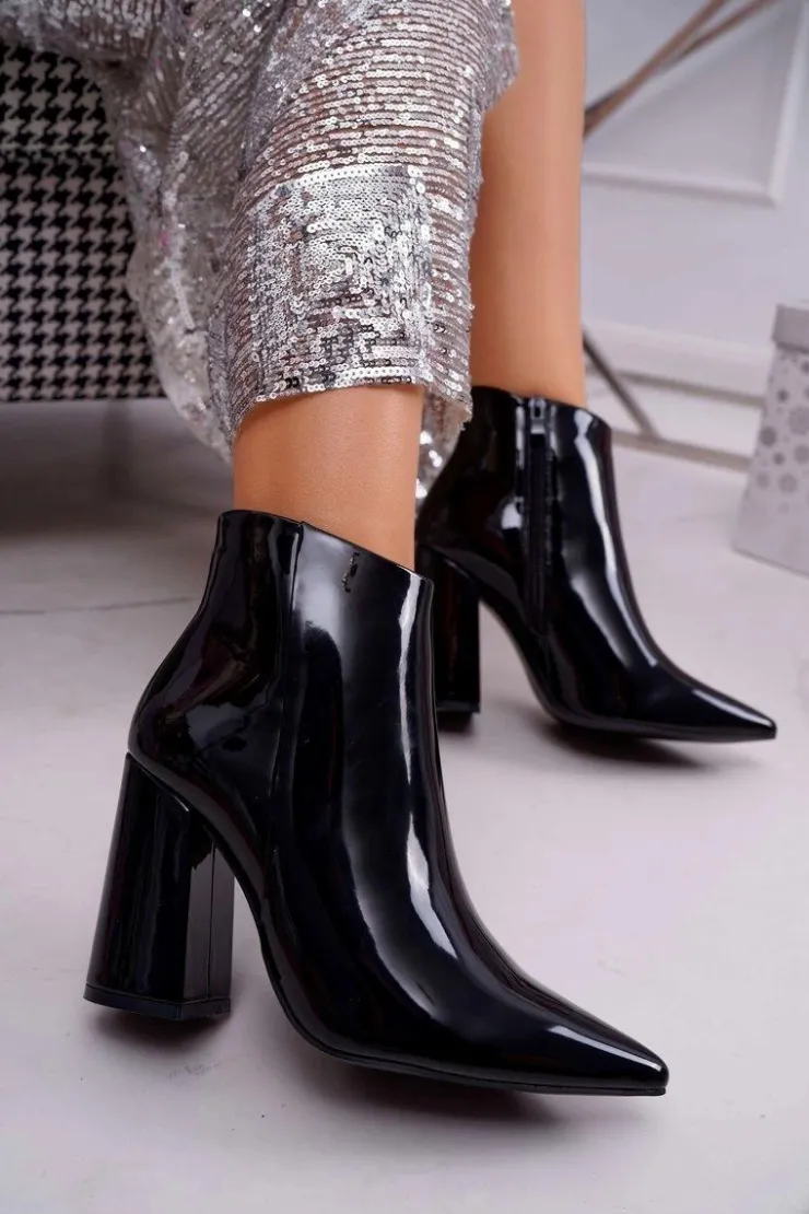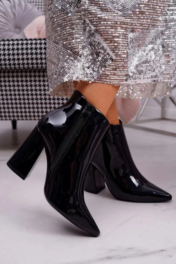 Damskie Boto Botki Damskie Na Słupku Lakierowane Czarne Ferty