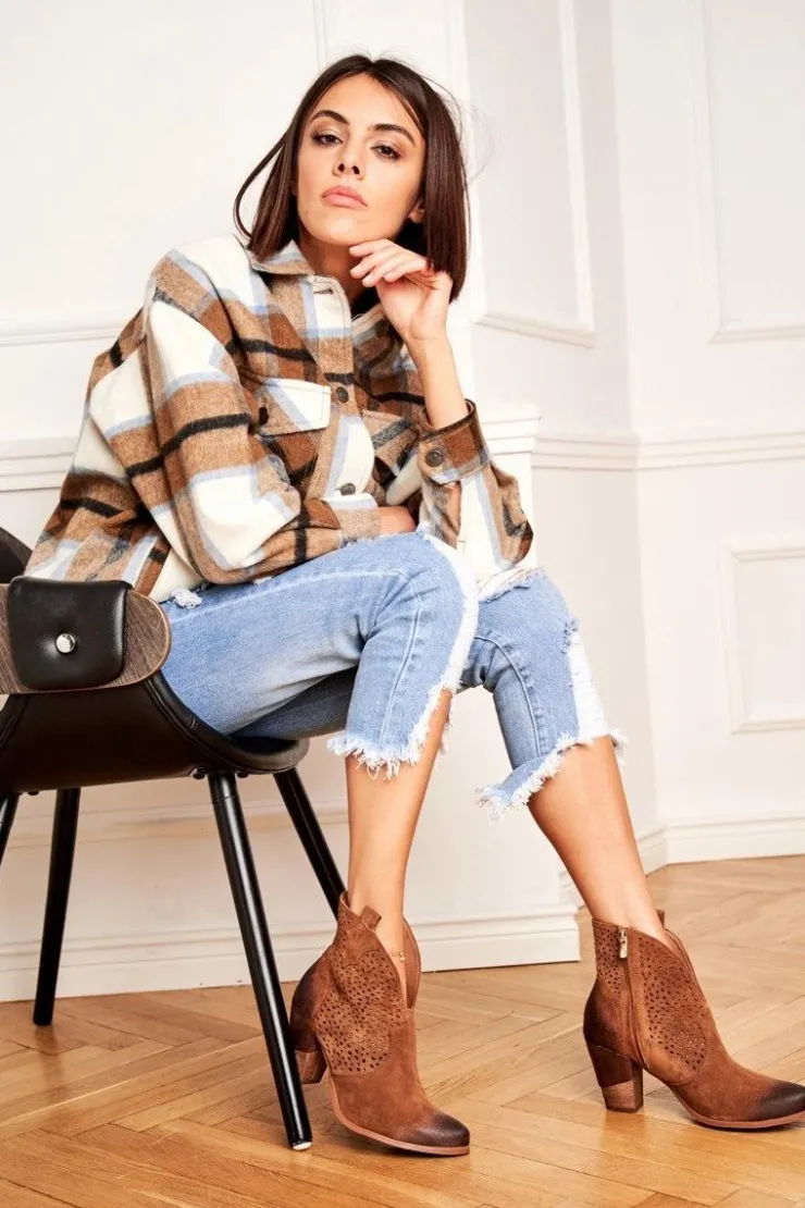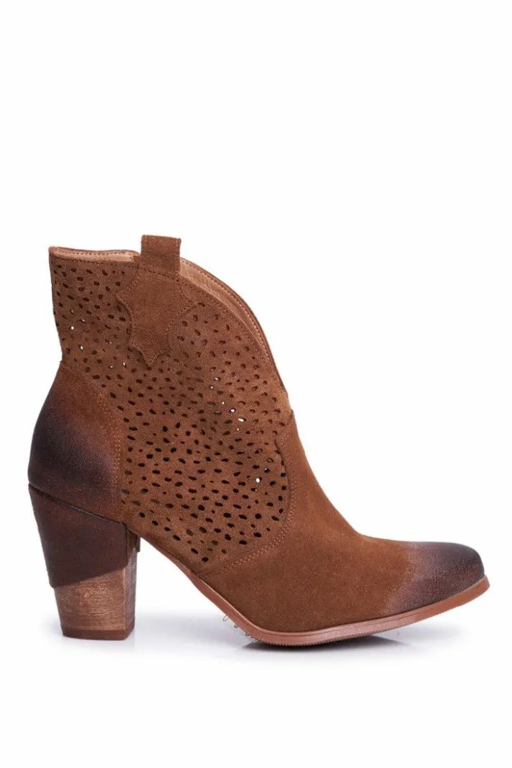 Botki to nie tylko buty na chłodne dni. Świetnie sprawdzą się również podczas tworzenia wiosennych stylizacji. Ażurowy design oraz zapinanie na zamek z boku cholewki. Botki w całości wykonane z naturalnego weluru. Produkt Polski firmy Exquisite co gwarantuje nam komfort oraz wysoką jakość wykonania. Idealne do zwiewnych sukienek oraz jeansowych spodni. Przy wyborze rozmiaru prosimy sugerować się tabelą rozmiarów.