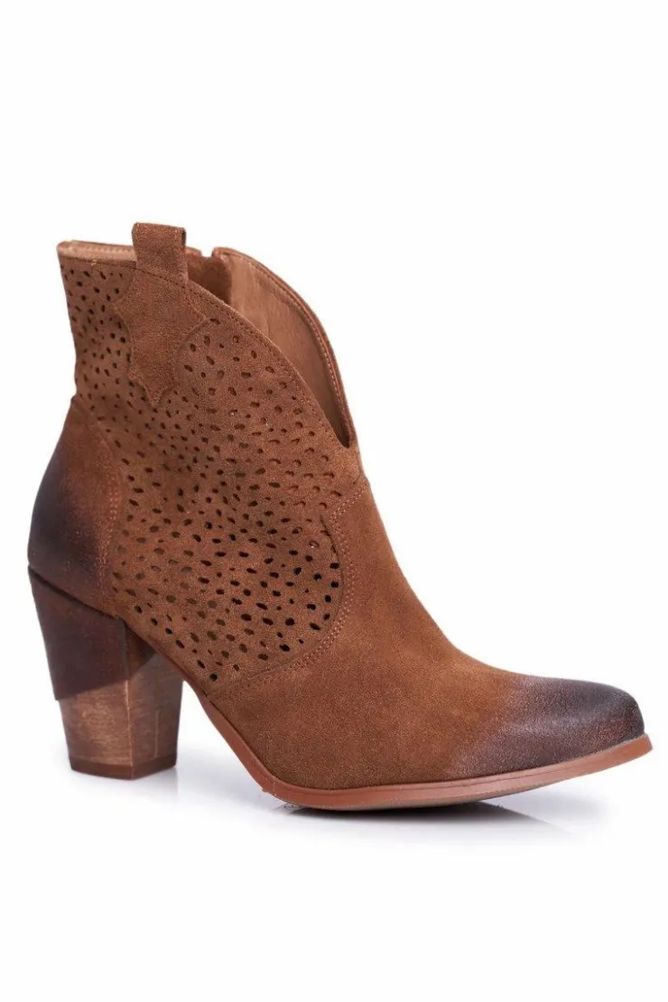 Damskie Boto Botki Damskie Na Słupku Skórzane Welurowe Kowbojki Exquisite Brązowe 1170