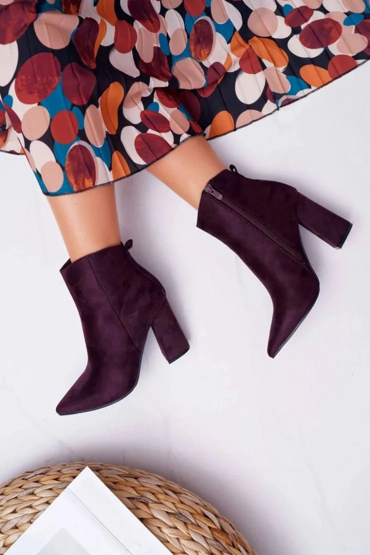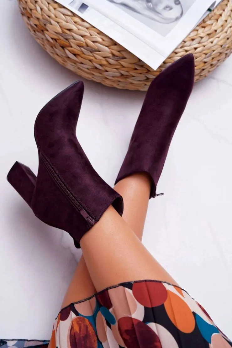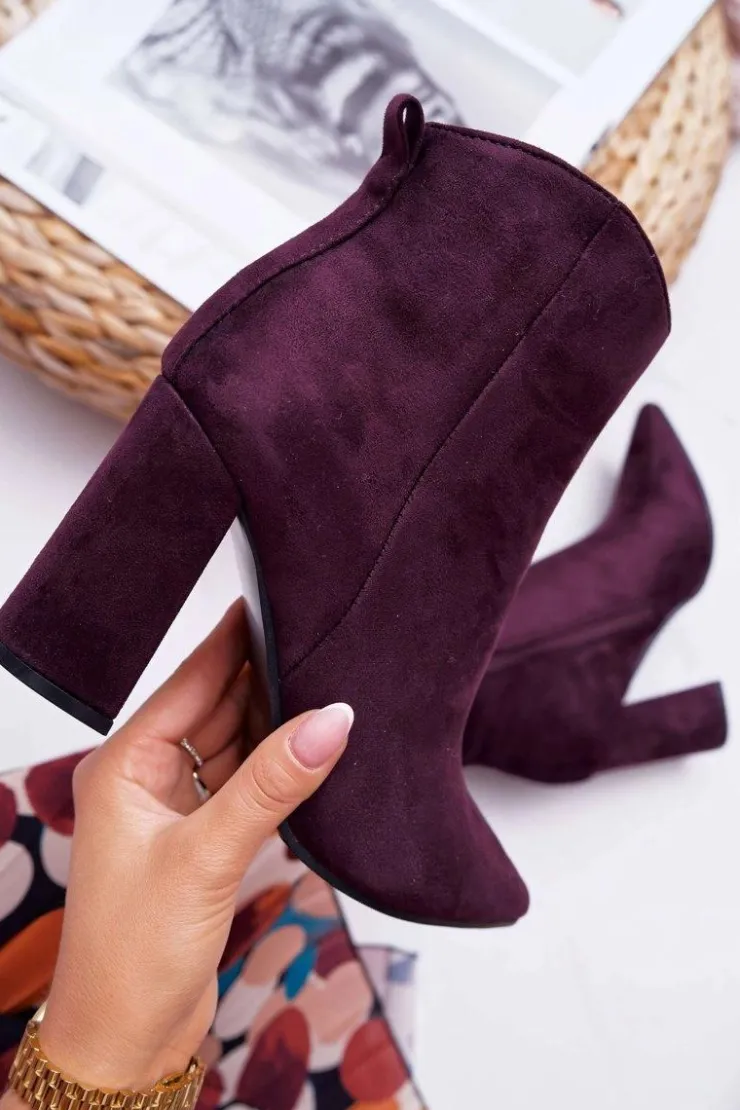 Damskie Boto Botki Damskie Na Słupku W Szpic Zamszowe Fioletowe Summe