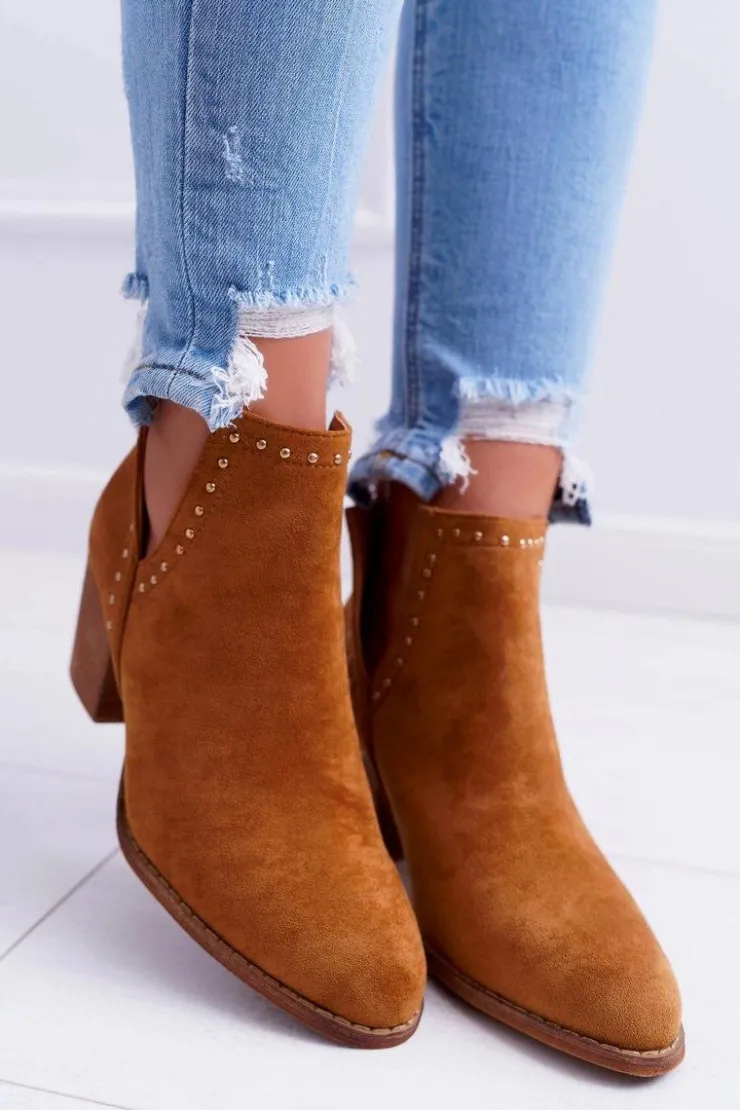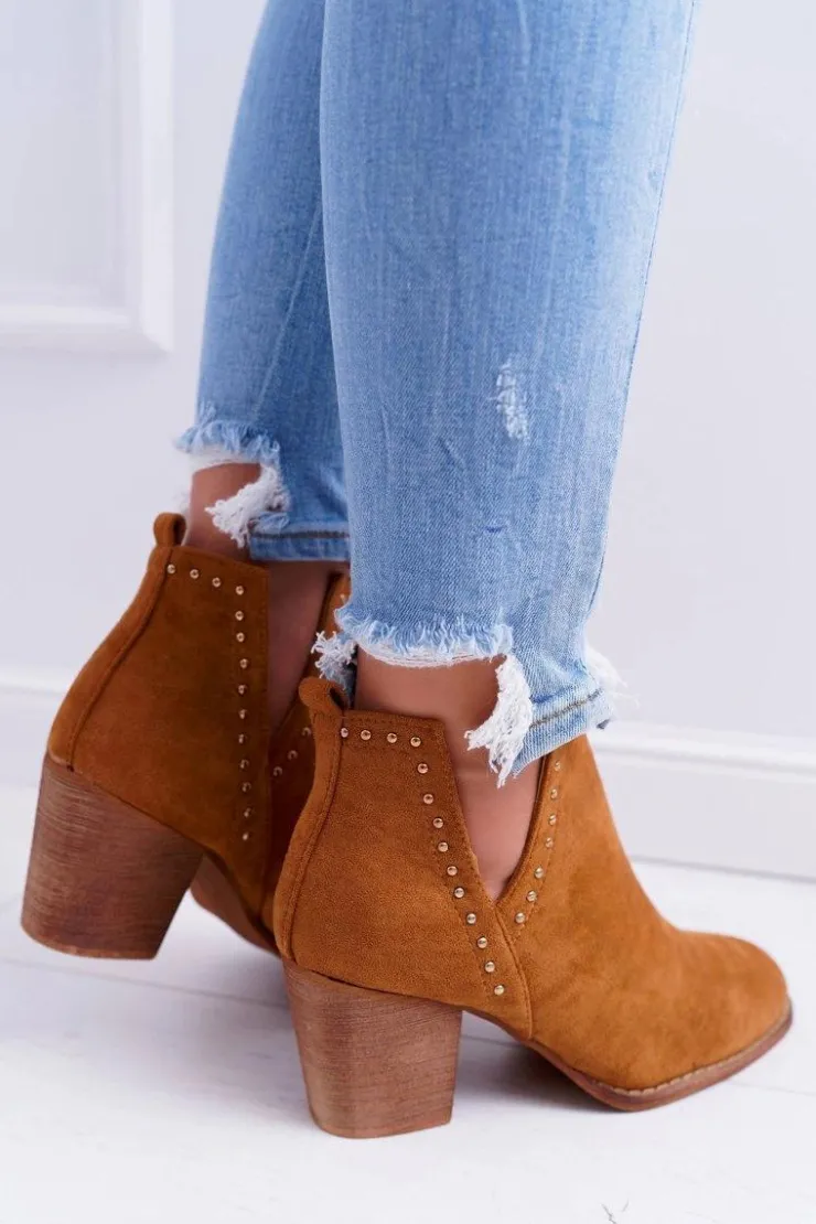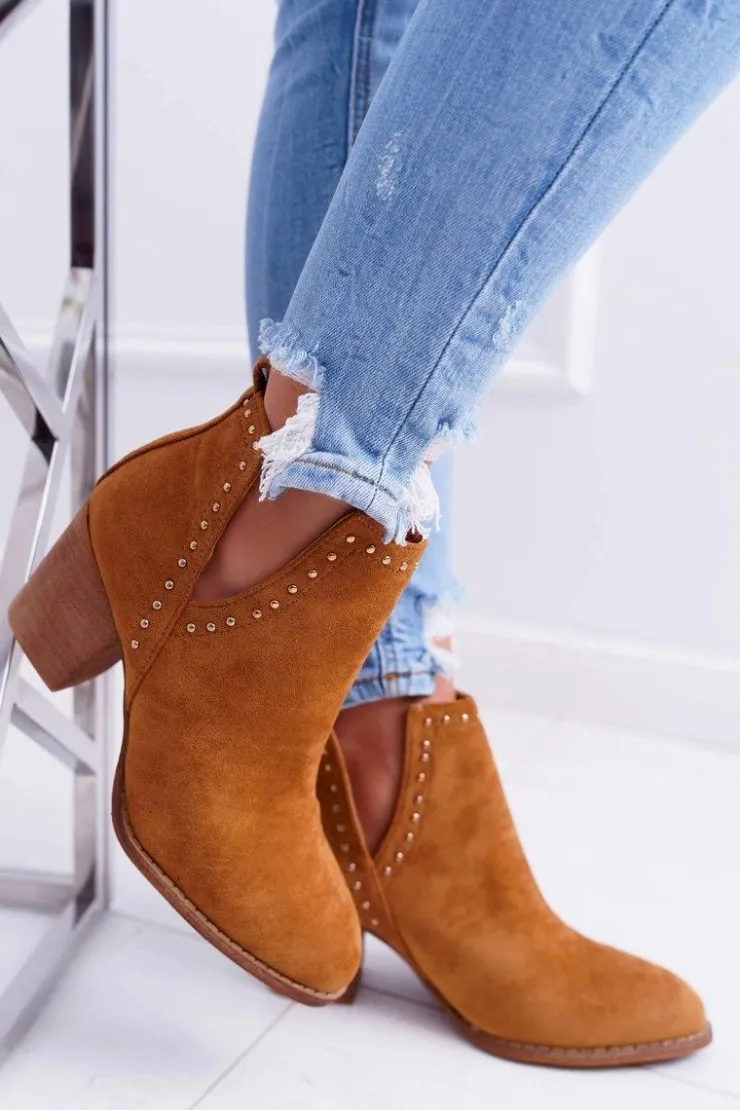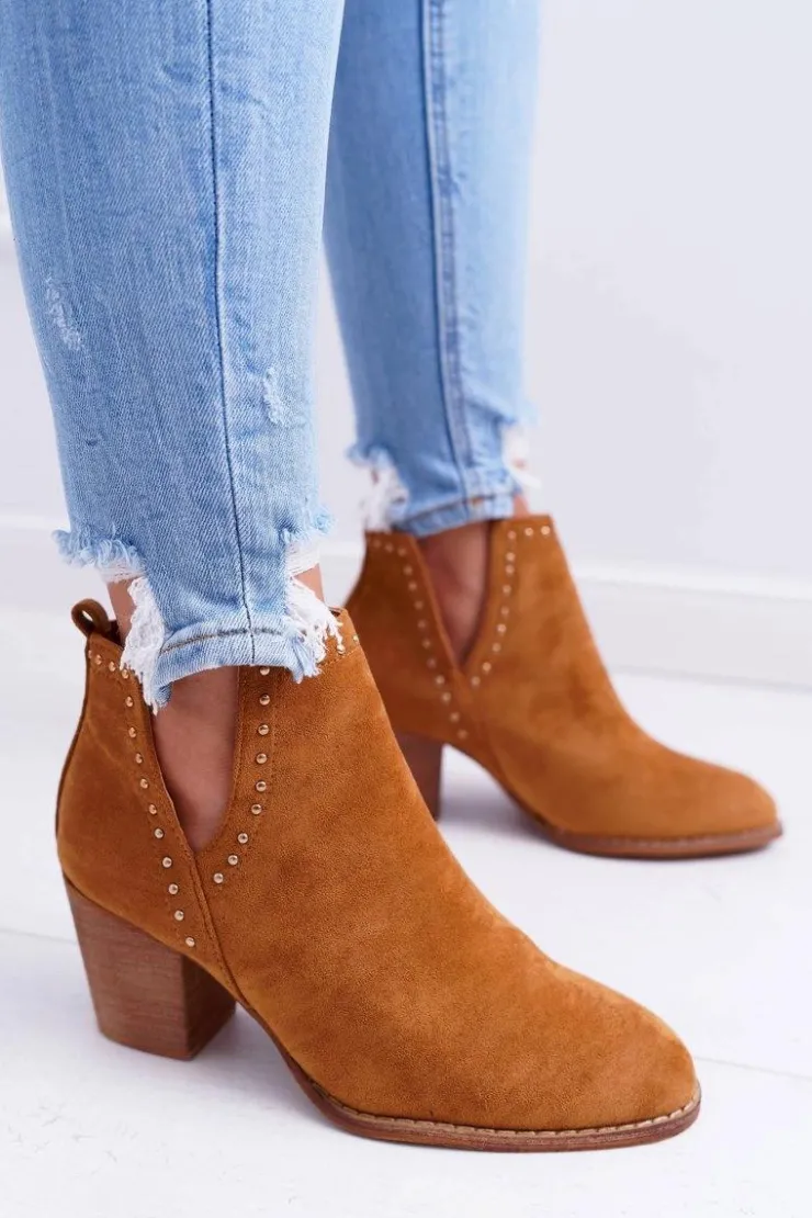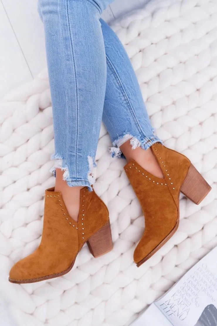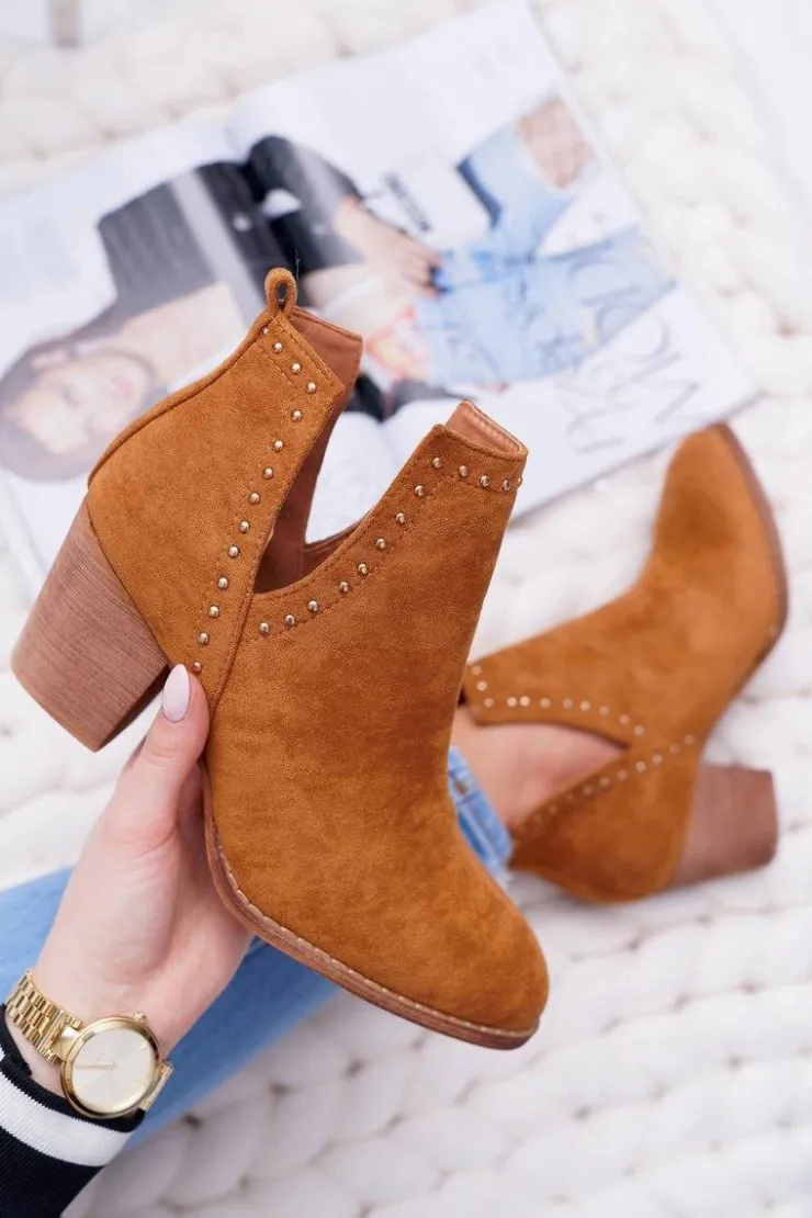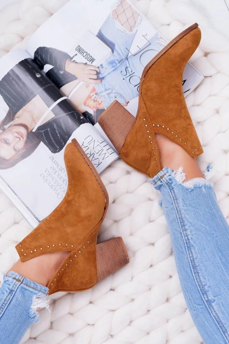 Damskie Boto Botki Damskie Na Słupku Wsuwane z Wycięciami Camel ManiMani