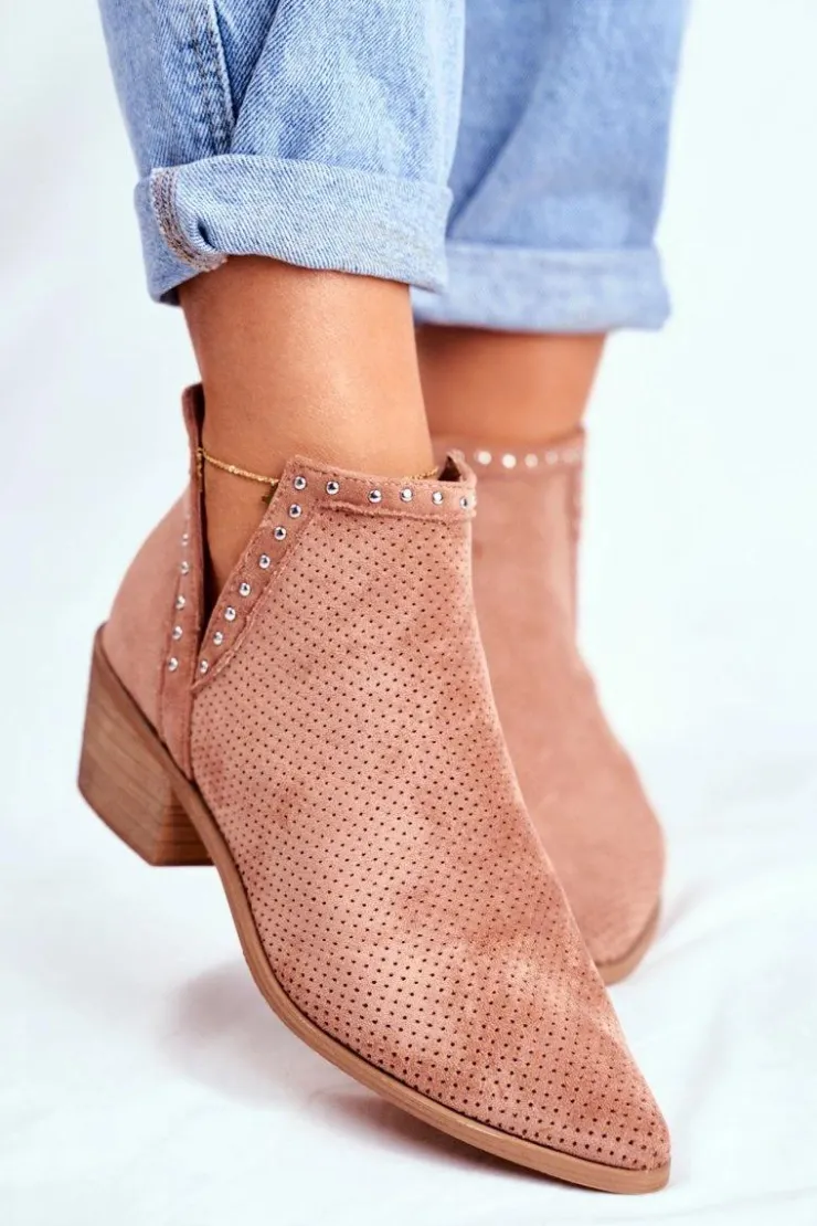 Damskie Boto Botki Damskie Na Słupku Zamszowe Ażurowe Różowe Margate