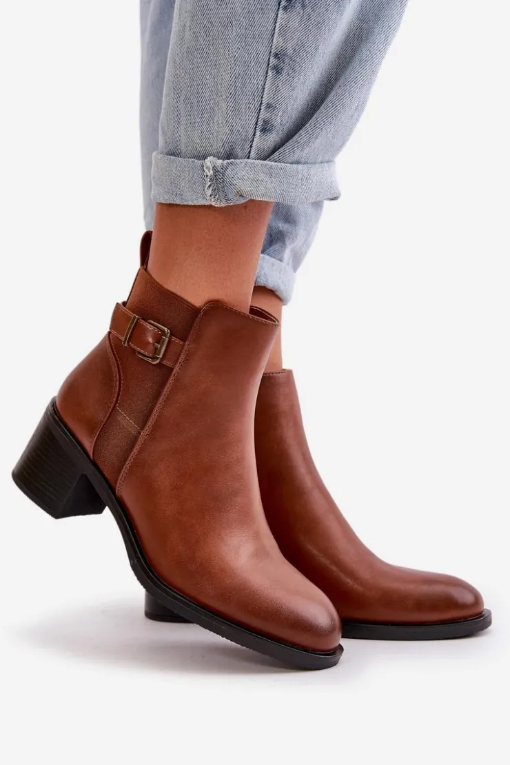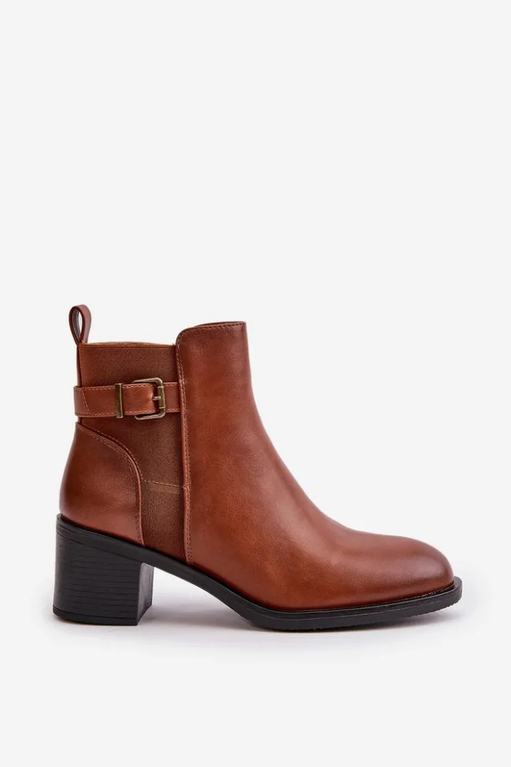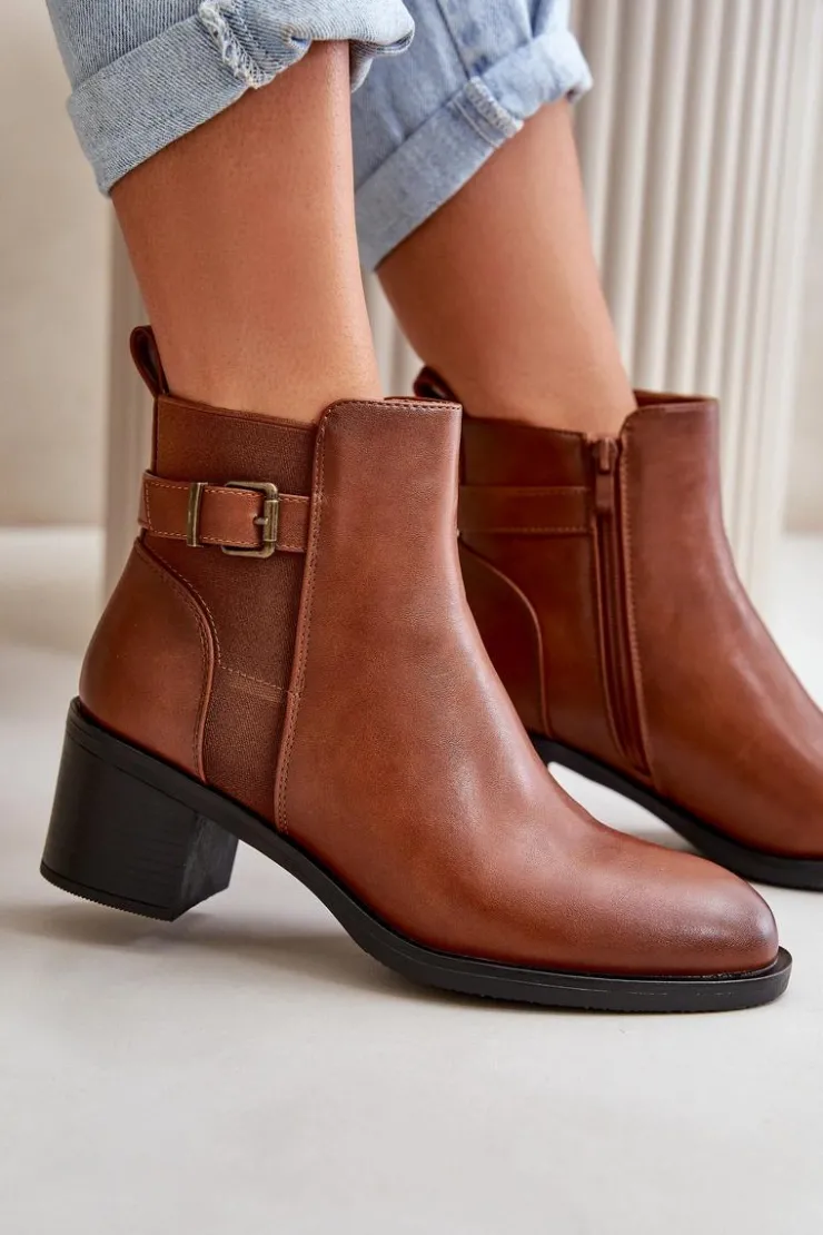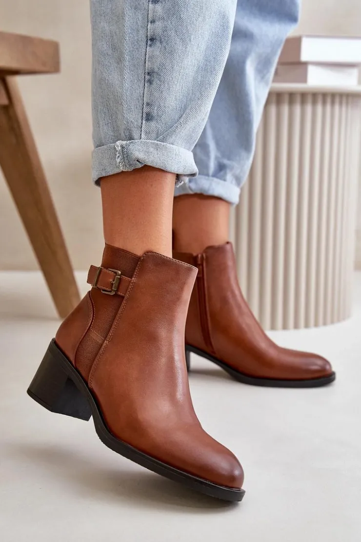 Botki damskie wykonane z eko skóry. Wnętrze ocieplone jest kocem obuwniczym, co zapewnia dodatkowe ciepło i komfort podczas chłodniejszych dni. Model zapinany na zamek, co ułatwia zakładanie i zdejmowanie, a także zapewnia doskonałe dopasowanie do stopy. Ozdobione detalem w postaci paseczka z klamrą. Idealne na jesienne i zimowe dni! Przy wyborze rozmiaru prosimy sugerować się tabelą rozmiarów.