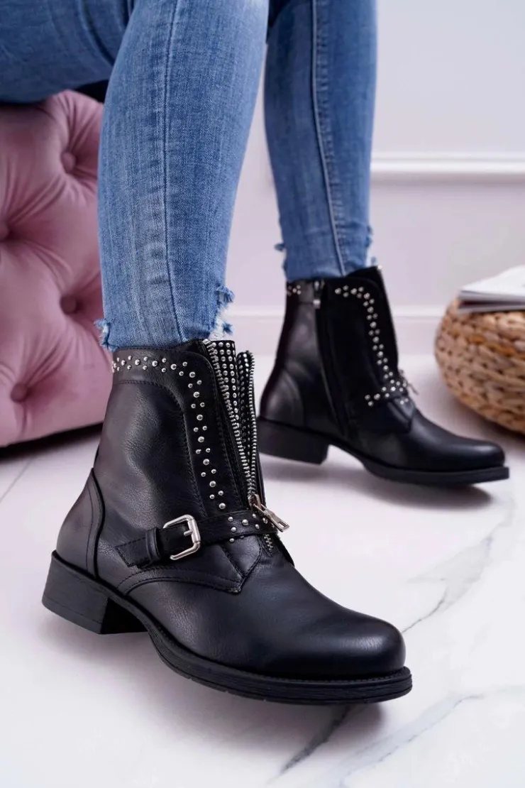 Mamy dla Was coś wyjątkowego! Botki workery z klamrami i nitami, które świetnie wpasują się w nadchodzące trendy. Wykonane z wysokiej jakości skóry ekologicznej. Zdobienia w postaci nitów i suwaka nadają im niesamowitego mocnego charakteru. Wnętrze pokryte kocem obuwniczym. Przy wyborze rozmiaru prosimy sugerować się tabelą rozmiarów.