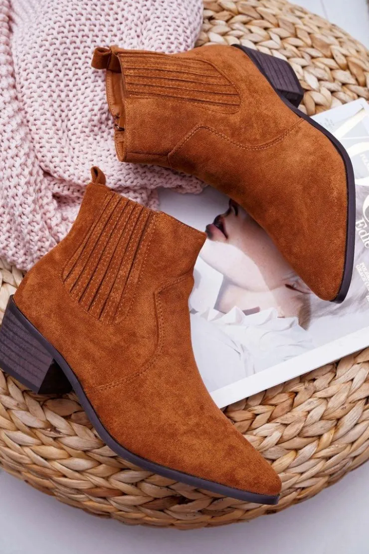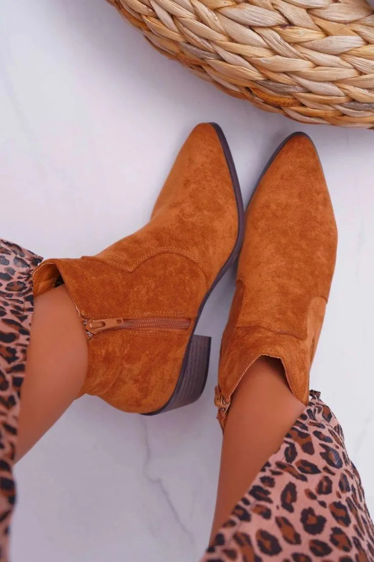 Damskie Boto Botki Damskie Płaski Obcas Camel Umberco