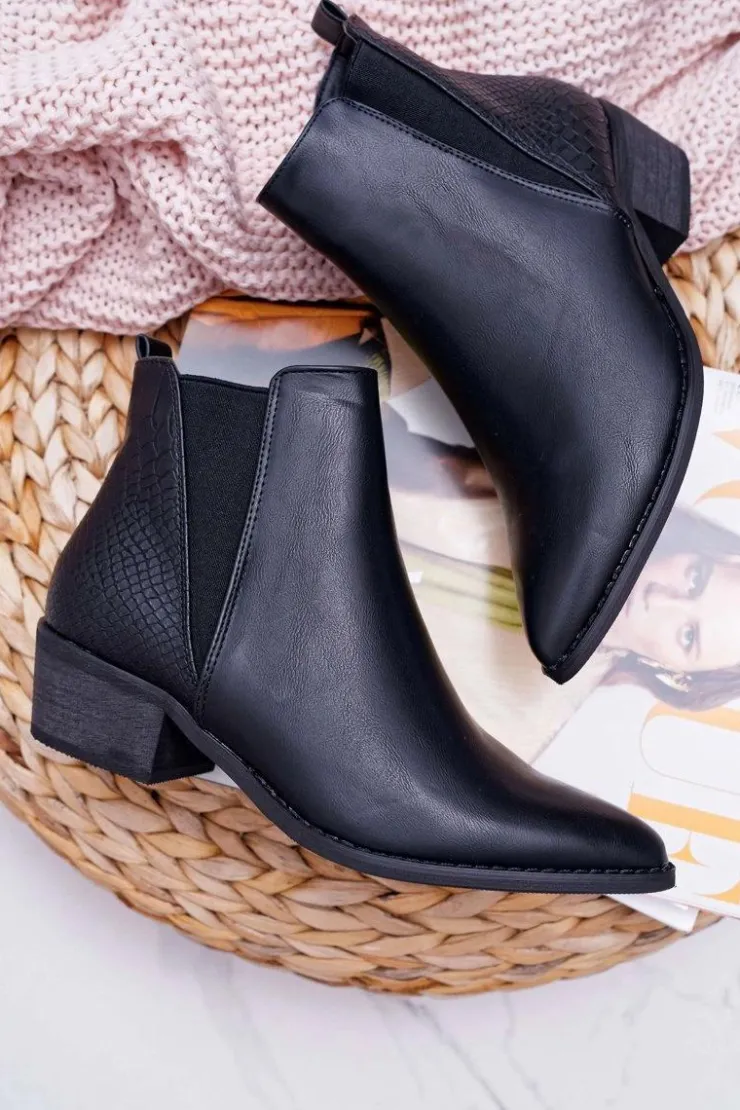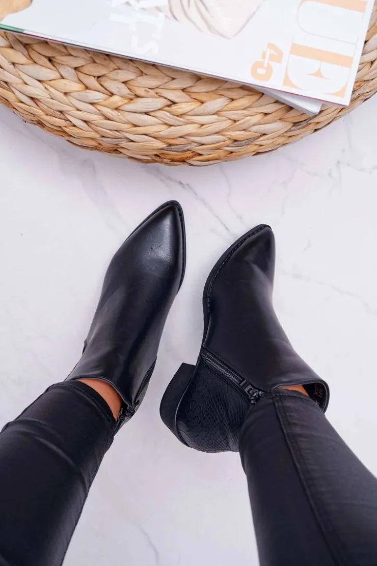 Damskie Boto Botki Damskie Płaski Obcas W Szpic Suwak Czarne Derme