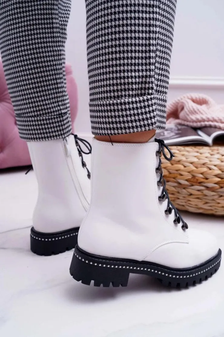 Damskie Boto Botki Damskie Płaski Obcas Wysokie Glany Białe Buena
