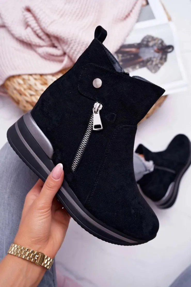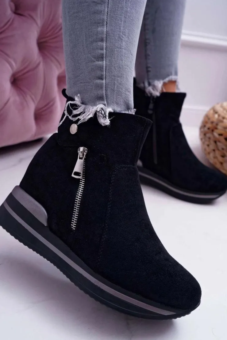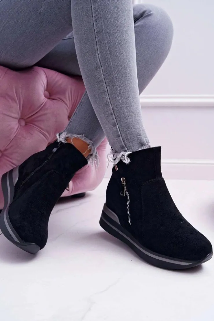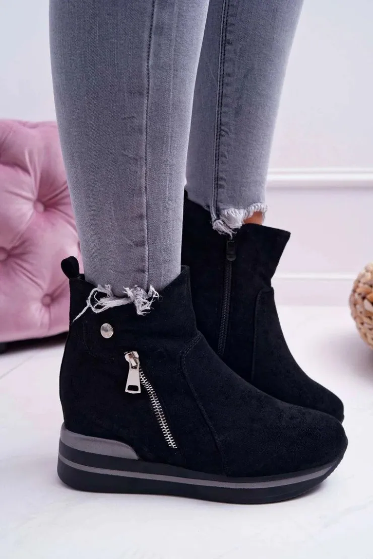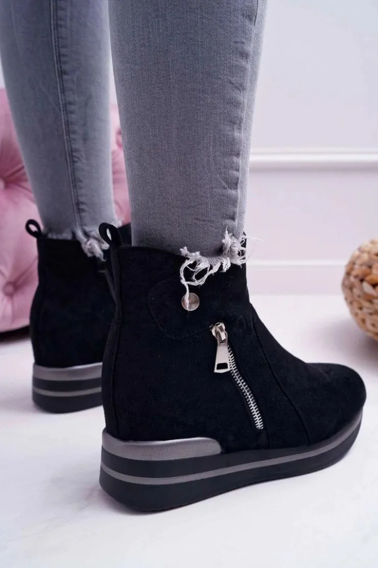 Damskie Boto Botki Damskie Ukryty Koturn Czarne Crazyness