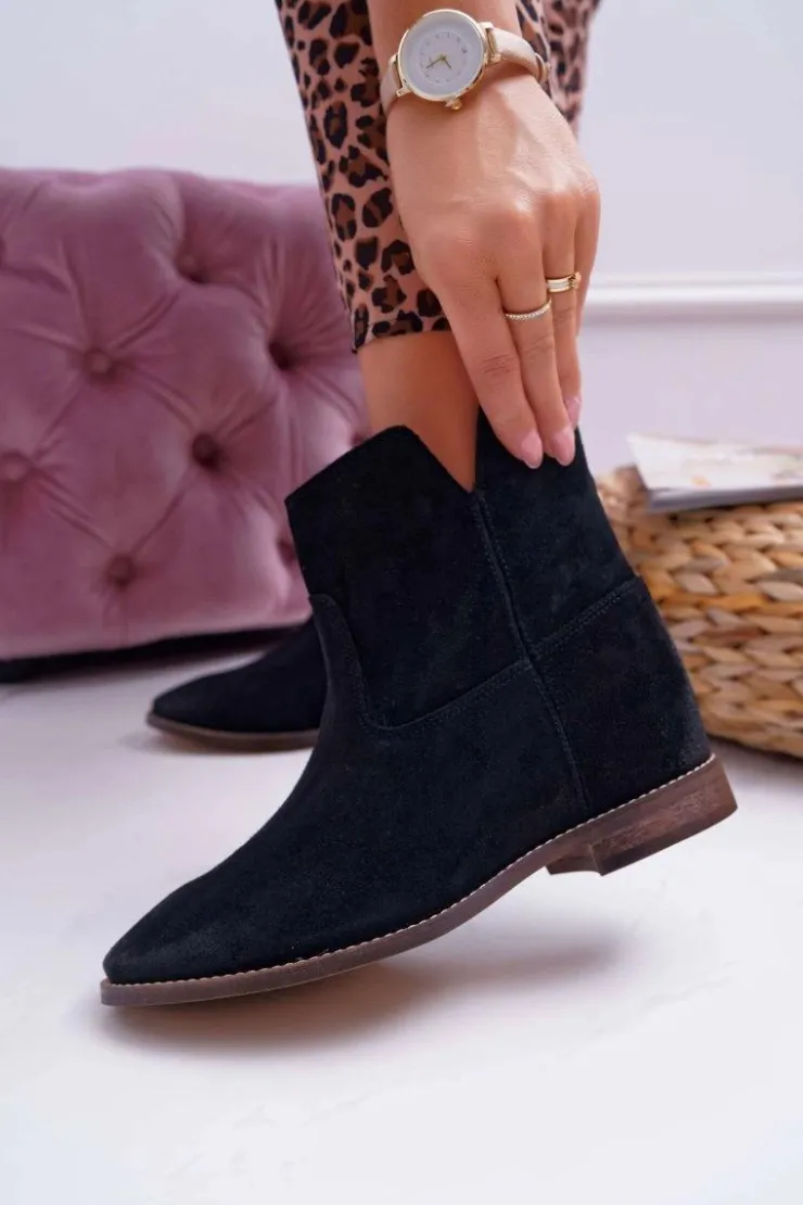 Damskie Boto Botki Damskie Ukryty Koturn Płaski Obcas Czarne Nicole 2419