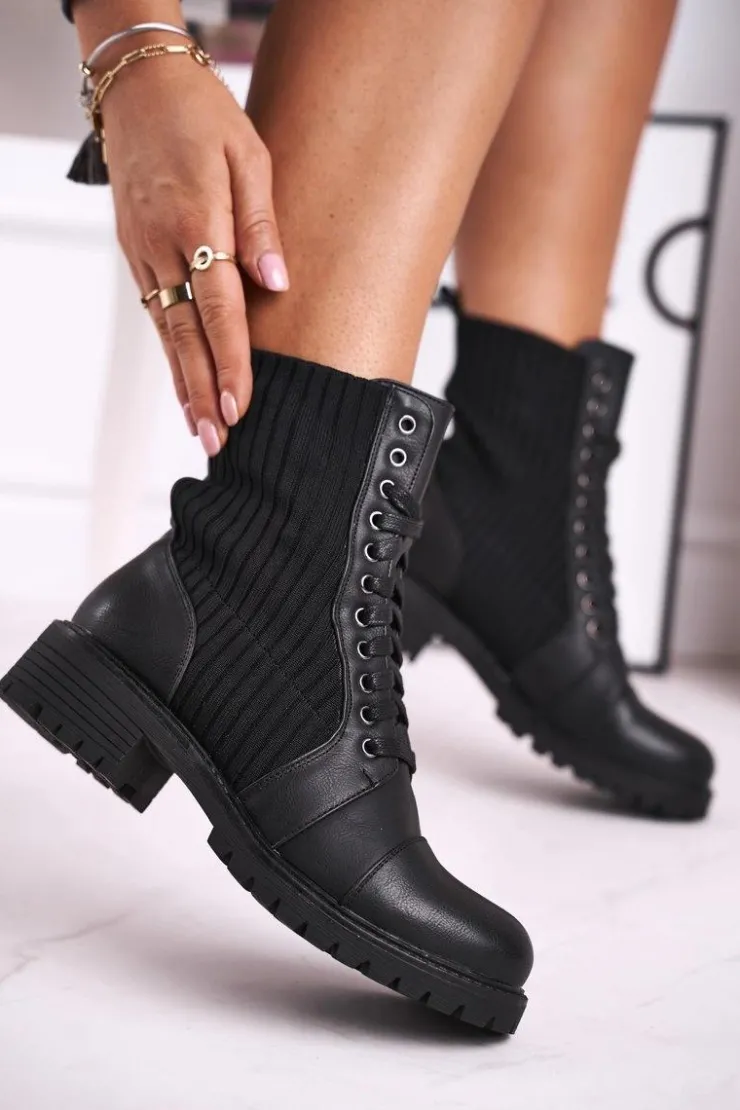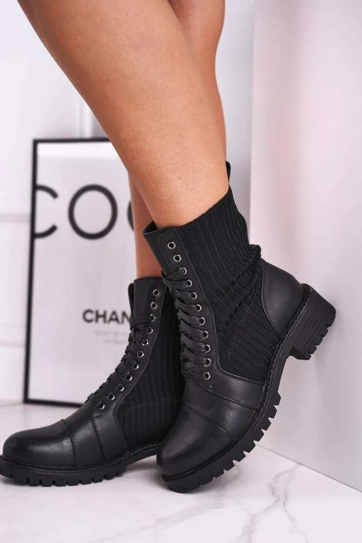 Damskie Boto Botki Damskie Ze Skarpetą Czarne Brielle
