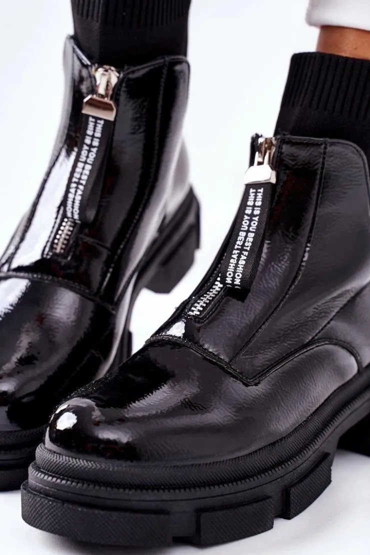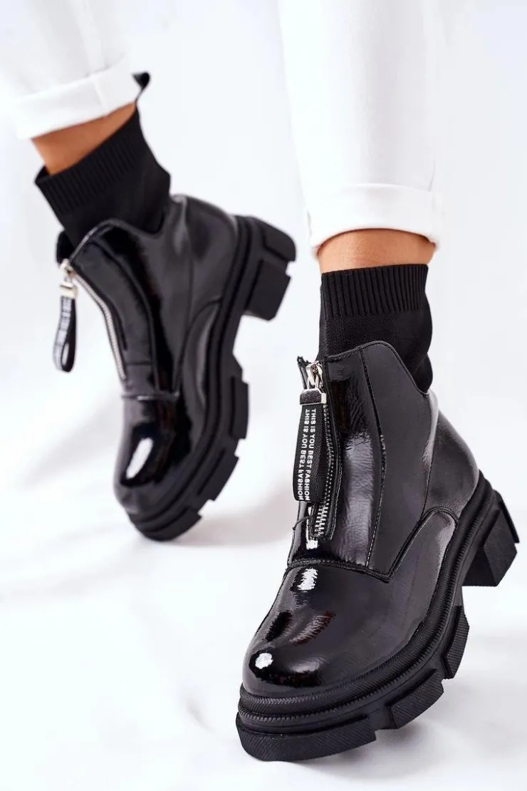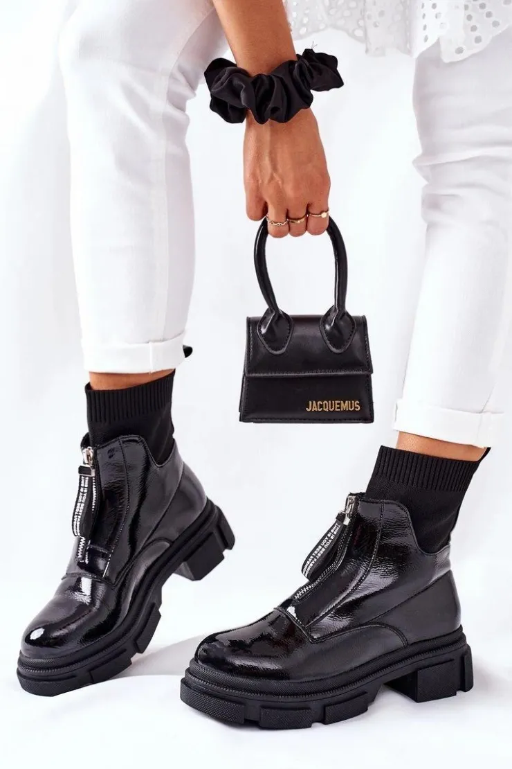 Damskie Boto Botki Na Masywnej Podeszwie Czarne Chicago