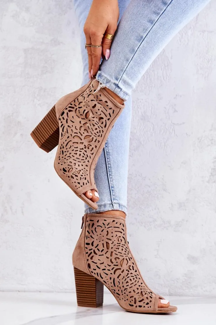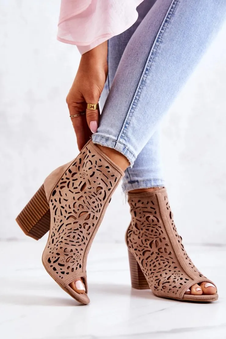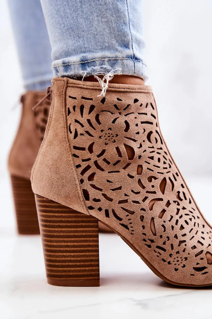 Botki to nieodłączny element kobiecych stylizacji. Wykonane z zamszowej eko skóry. Klasyczne botki z wyciętymi palcami są zapinane na suwak z tyłu cholewki. Obcas w postaci słupka optycznie wysmukli nogę. Ażurowy wzorek sprawi, że buty będą cudownie prezentować się na nodze! Koniecznie sprawdź także pozostałą naszą kolekcję botków! Przy wyborze rozmiaru prosimy sugerować się tabelą rozmiarów.