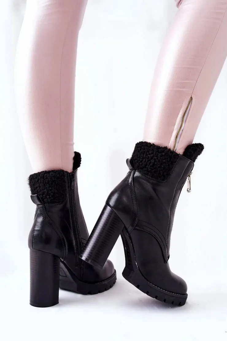 Czarne botki to hit tego sezonu! Wnętrze butów wyścielone miłym w dotyku kocem obuwniczym! Suwak na boku ułatwi zakładanie! Na górze cholewki znajduje się ciepły kożuch. Obcas w postaci słupka. Podczas wyboru rozmiaru prosimy kierować się tabelą rozmiarów.