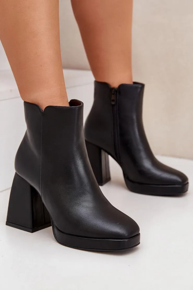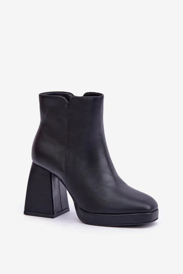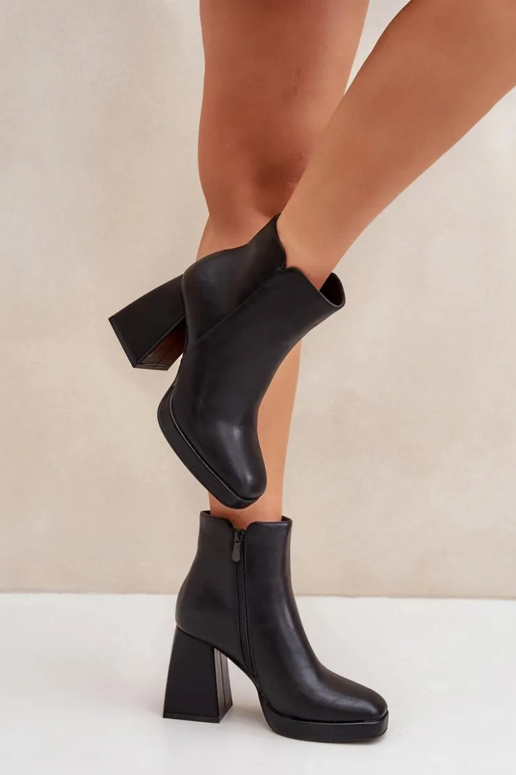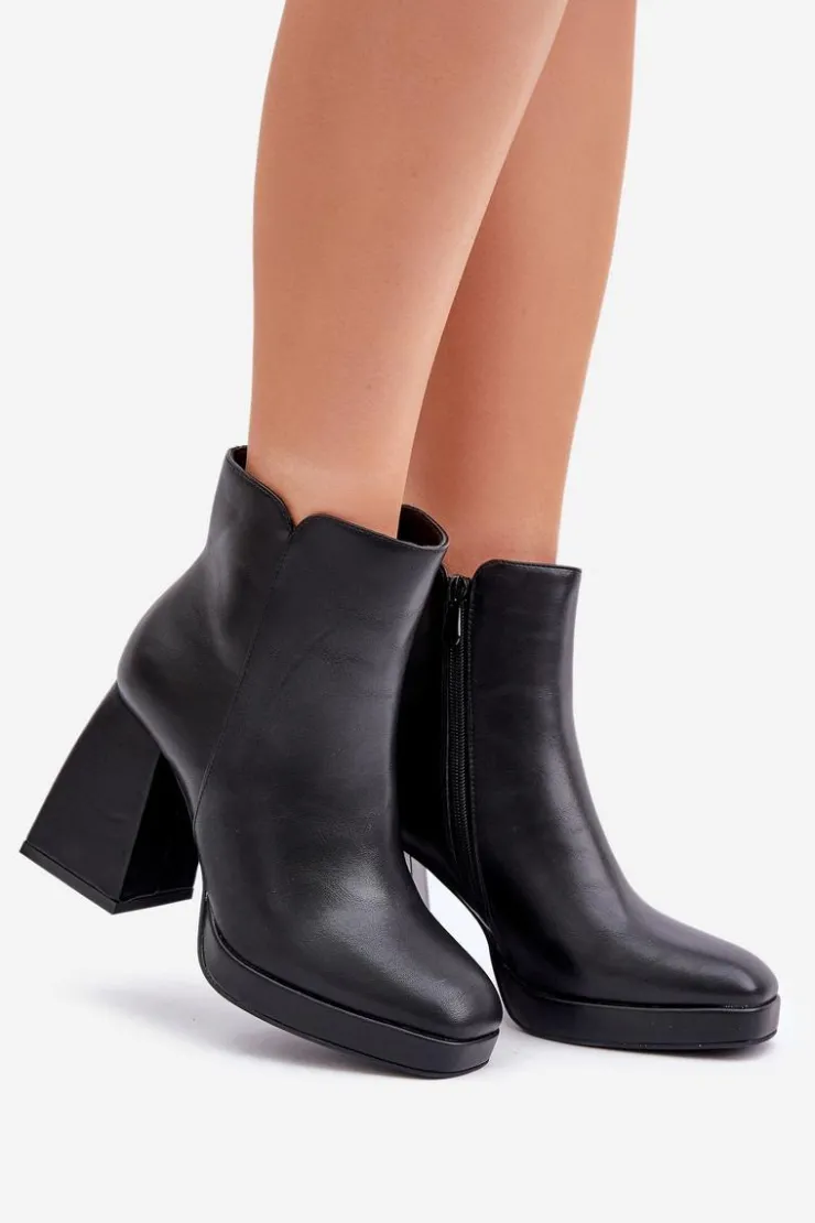 Botki damskie wykonane z eko skóry, osadzone na stabilnym słupkowym obcasie. Zapinane na zamek dla wygody użytkowania. Wnętrze ocieplane, co zapewnia komfort i ciepło w chłodniejsze dni. Uniwersalny model, który świetnie sprawdzi się w codziennych stylizacjach. Przy wyborze rozmiaru prosimy sugerować się tabelą rozmiarów.
