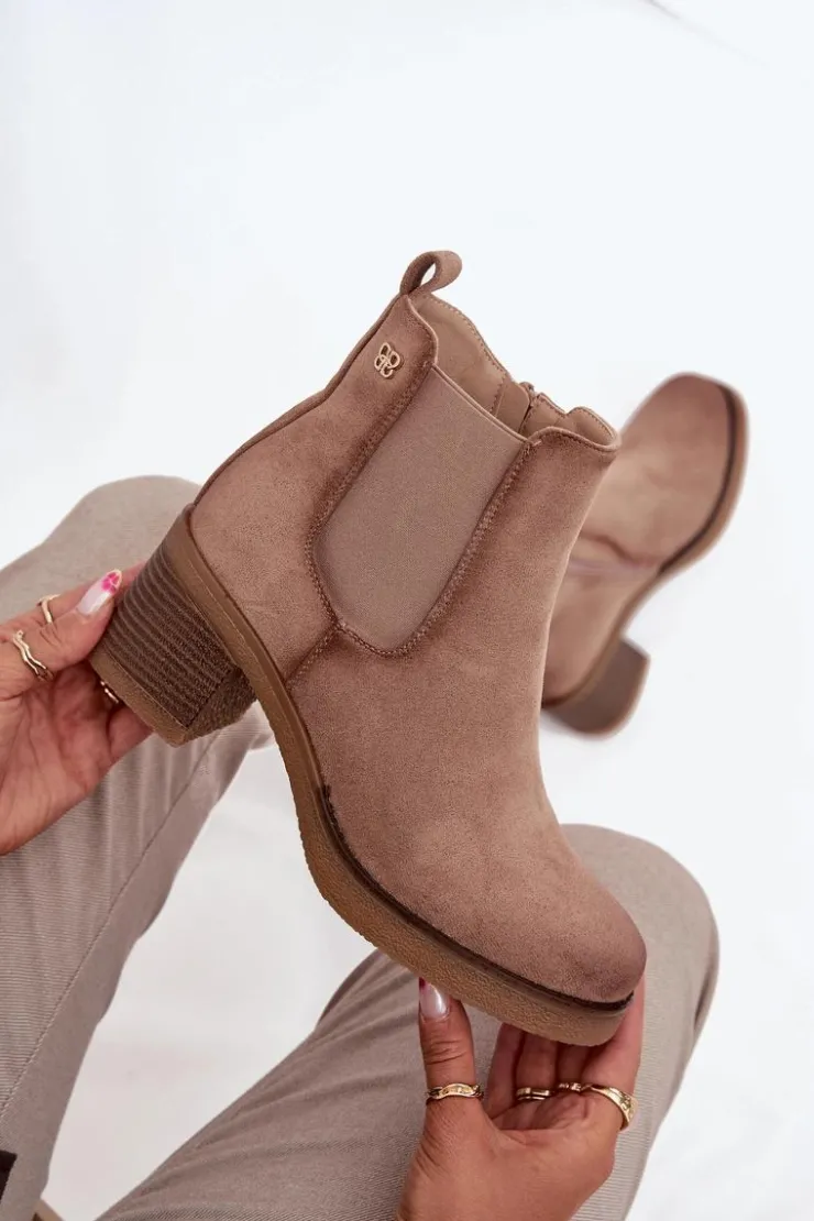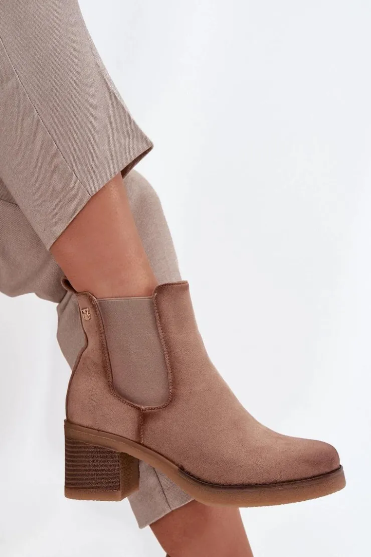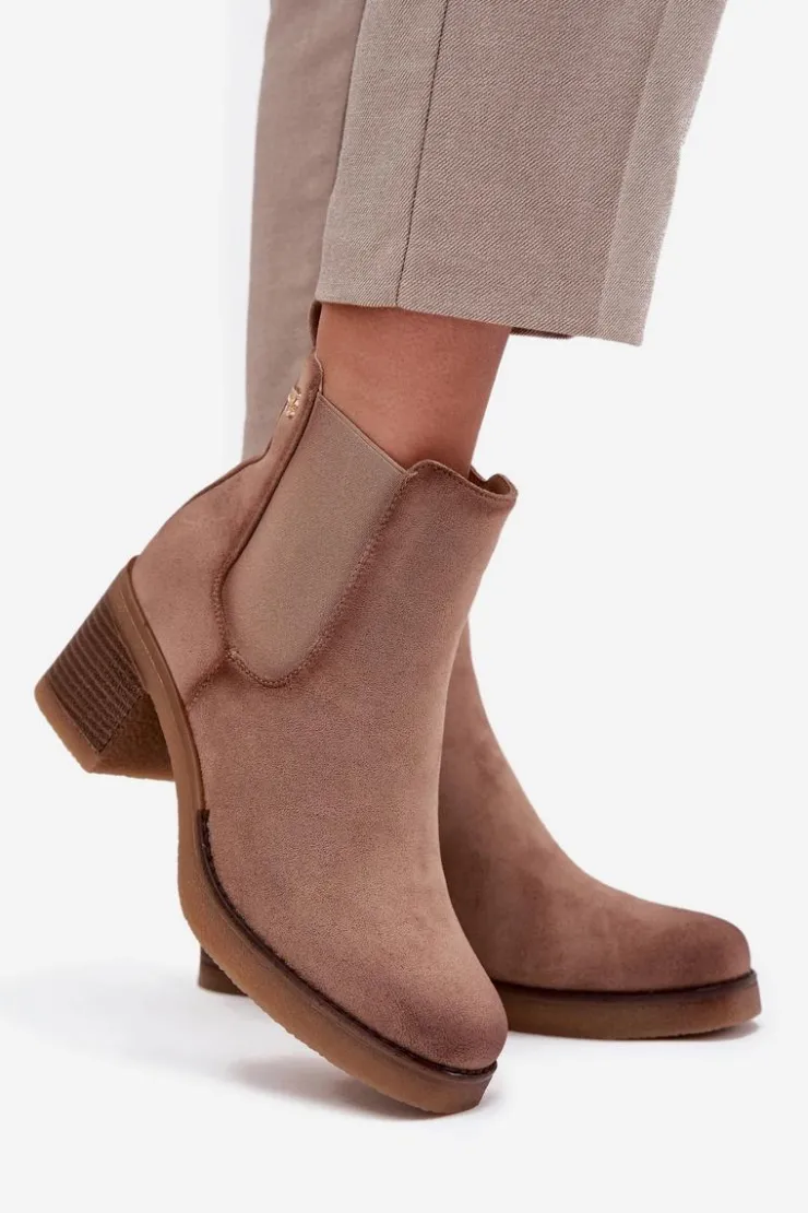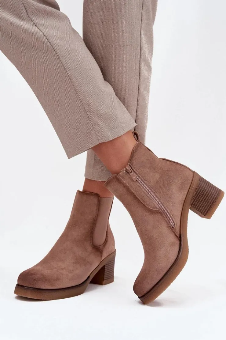 Botki damskie wykonane z eko zamszu. Osadzone na obcasie w formie słupka, który zapewnia stabilność i komfort przez cały dzień. Ocieplane, gwarantują ciepło w chłodniejsze dni, a zamek błyskawiczny ułatwia zakładanie. Z boku cholewki znajduje się subtelny, złoty detal, który dodaje im eleganckiego akcentu. Idealne do codziennych stylizacji, które wymagają zarówno wygody, jak i modnego wyglądu. Przy wyborze rozmiaru prosimy sugerować się tabelą rozmiarów.