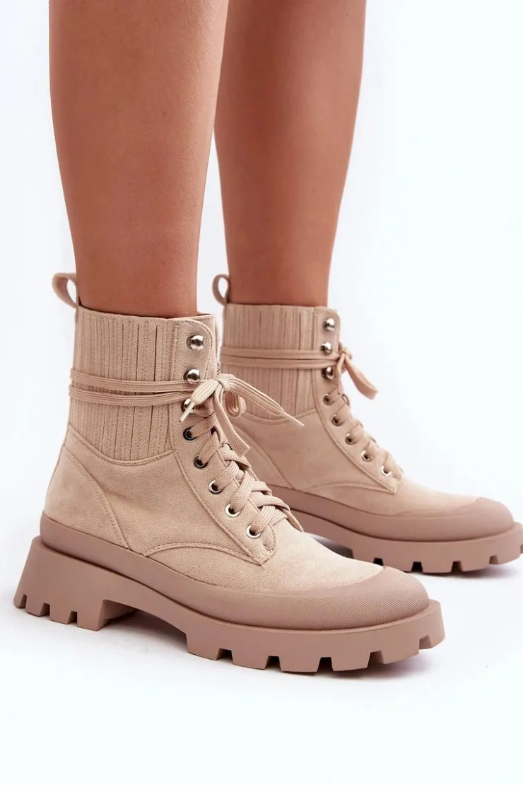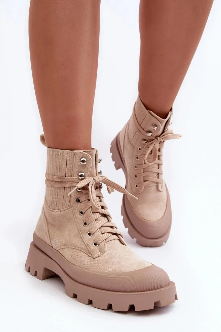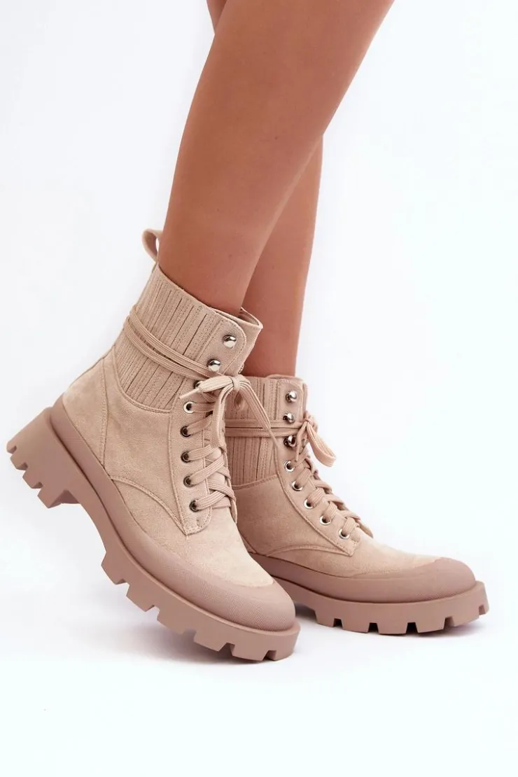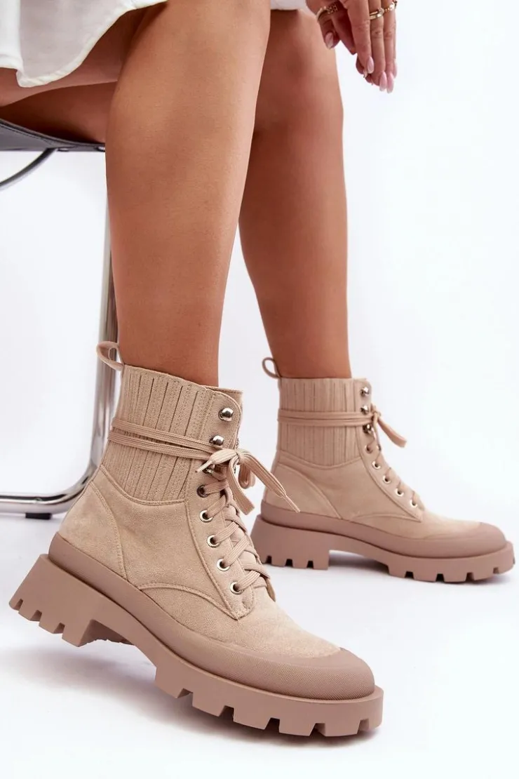 Damskie Boto Botki Trapery Damskie Sznurowane Beżowe Gordts