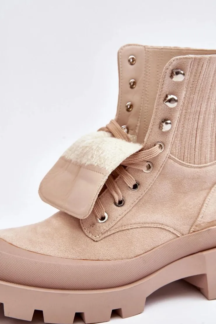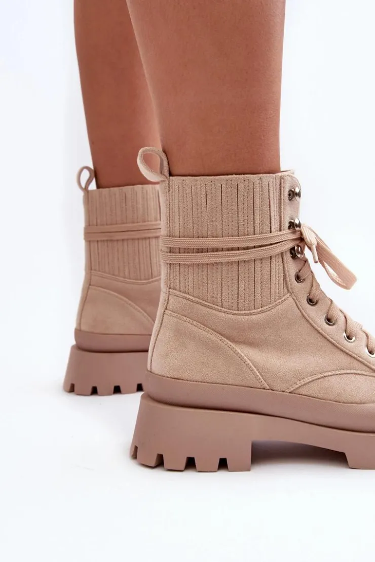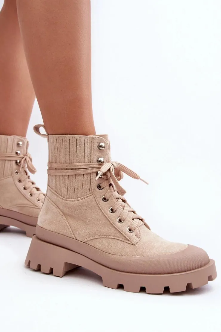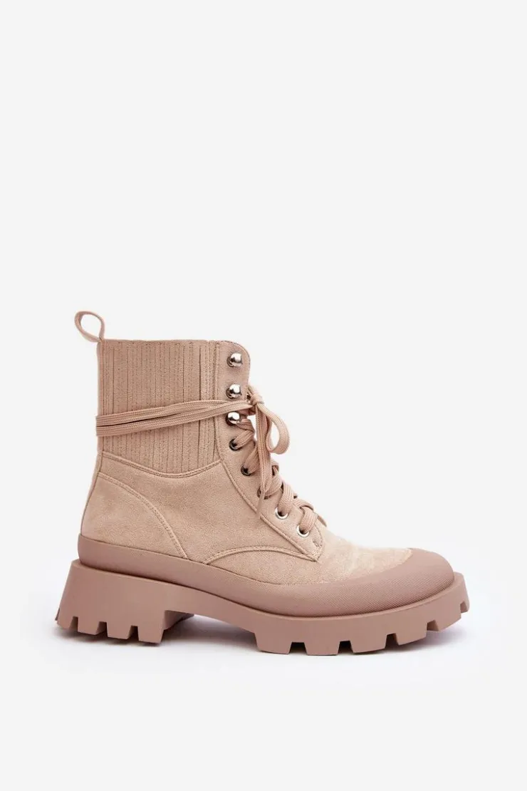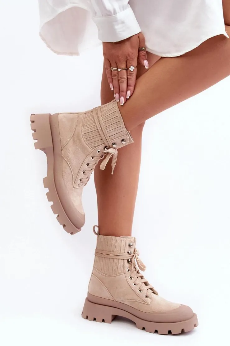 Damskie Boto Botki Trapery Damskie Sznurowane Beżowe Gordts