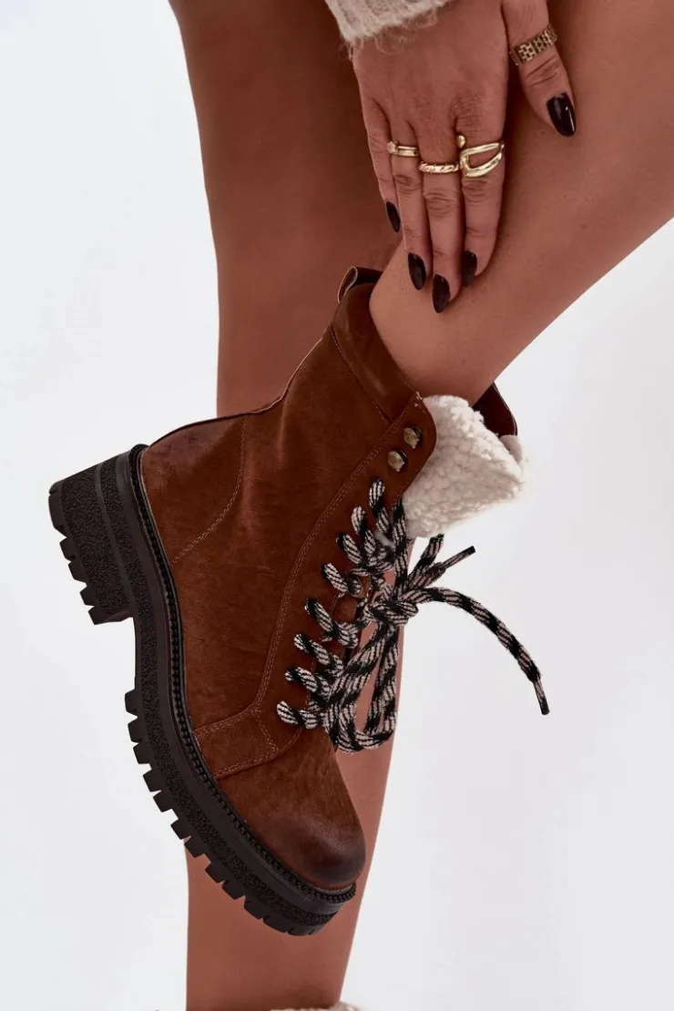 Botki trapery damskie wykonane z eko skóry to połączenie stylu i wygody, idealne na co dzień. Model zapinany na zamek oraz sznurowany, co pozwala na idealne dopasowanie do stopy i ułatwia zakładanie. Solidne wykonanie oraz modny, ponadczasowy fason sprawiają, że buty świetnie sprawdzą się w jesienno-zimowych stylizacjach. To praktyczna propozycja dla kobiet ceniących komfort, trwałość i miejski charakter obuwia. Przy wyborze rozmiaru prosimy sugerować się tabelą rozmiarów.