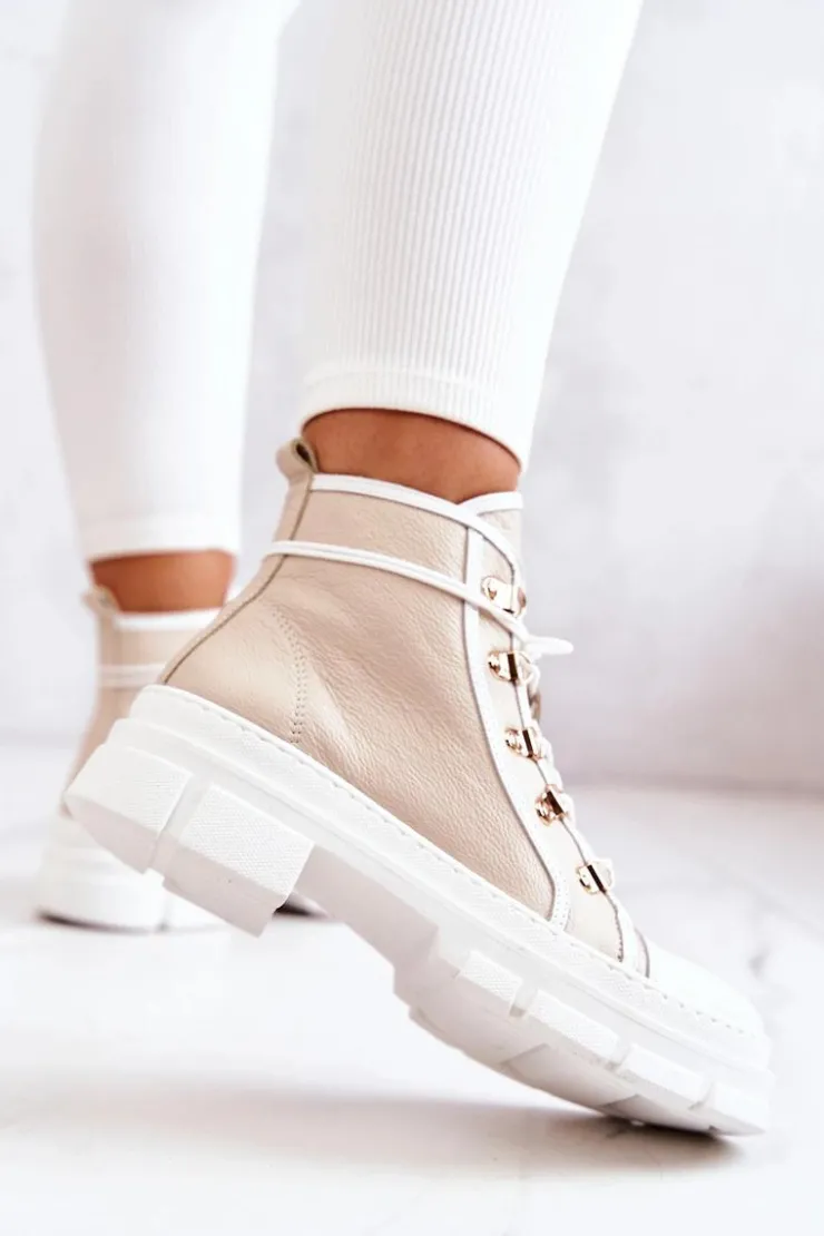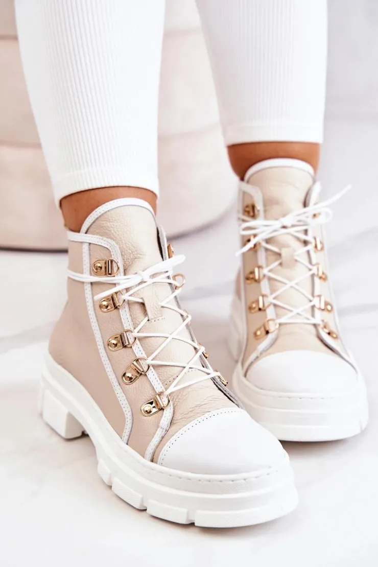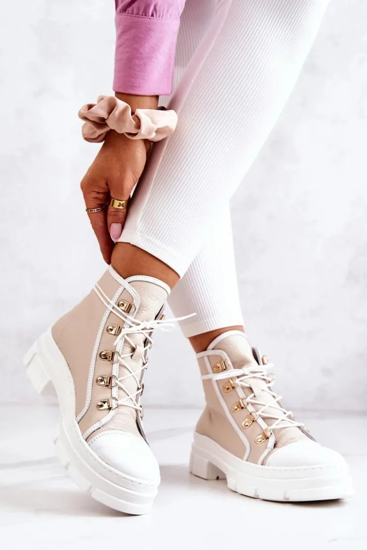 Botki zostały wykonane z naturalnej skóry. Posiadają klasyczne wiązanie umożliwiające dopasowanie buta do tęgości nogi. Grubsza podeszwa świetnie odizoluje od zimnego podłoża. Wkładka wykonana z naturalnej skóry. Pięknie prezentują się na nodze! Koniecznie musisz je mieć! Przy wyborze rozmiaru prosimy sugerować się tabelą rozmiarów.