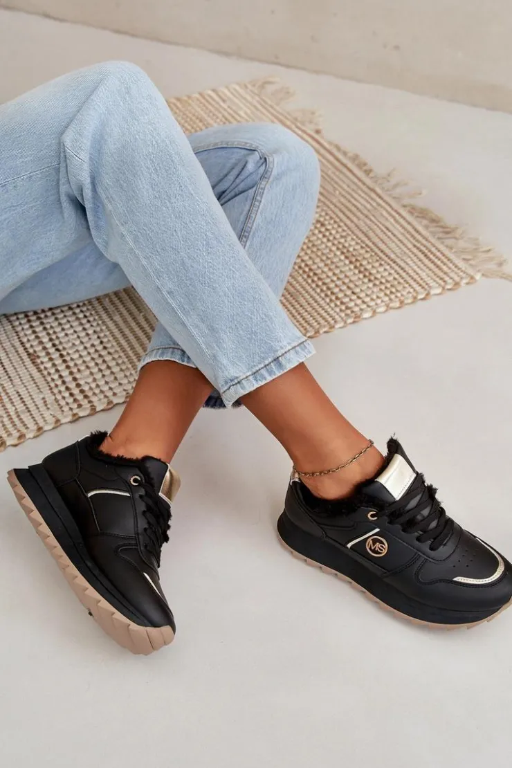 Damskie buty sportowe wykonane z eko skóry. Wnętrze ocieplone jest futerkiem, co zapewnia dodatkowy komfort i ochronę przed zimnem. Osadzone na solidnej platformie, buty te nie tylko podnoszą sylwetkę, ale także zapewniają doskonałą stabilność. Dodatkowym elementem dekoracyjnym jest złoty detal umieszczony na cholewce, który dodaje elegancji i nowoczesnego stylu. Idealne do noszenia zarówno na co dzień, jak i podczas aktywności na świeżym powietrzu. Przy wyborze rozmiaru prosimy kierować się tabelą rozmiarów.