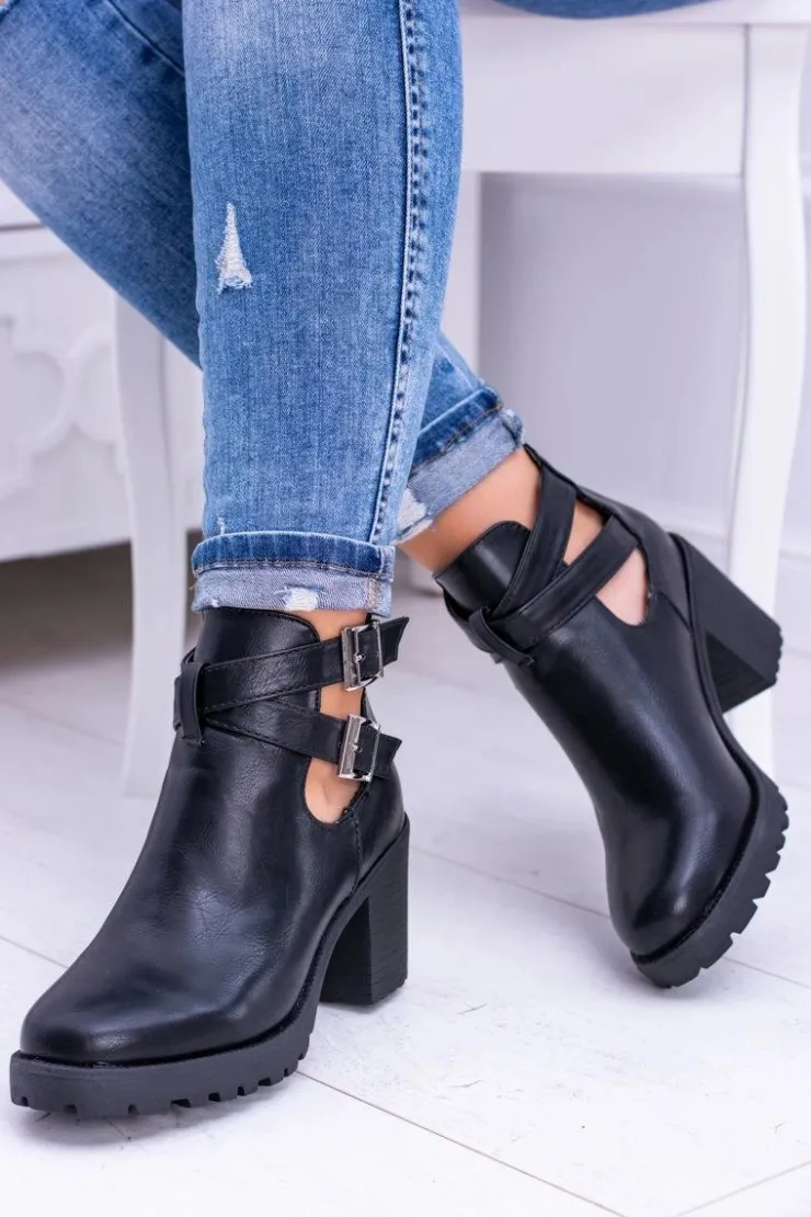 Damskie Boto Czarne Botki z Wycięciami Brooklyn