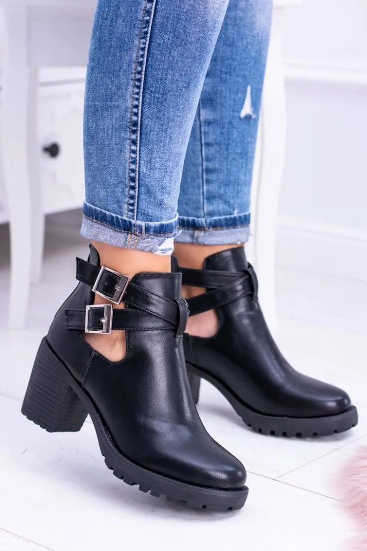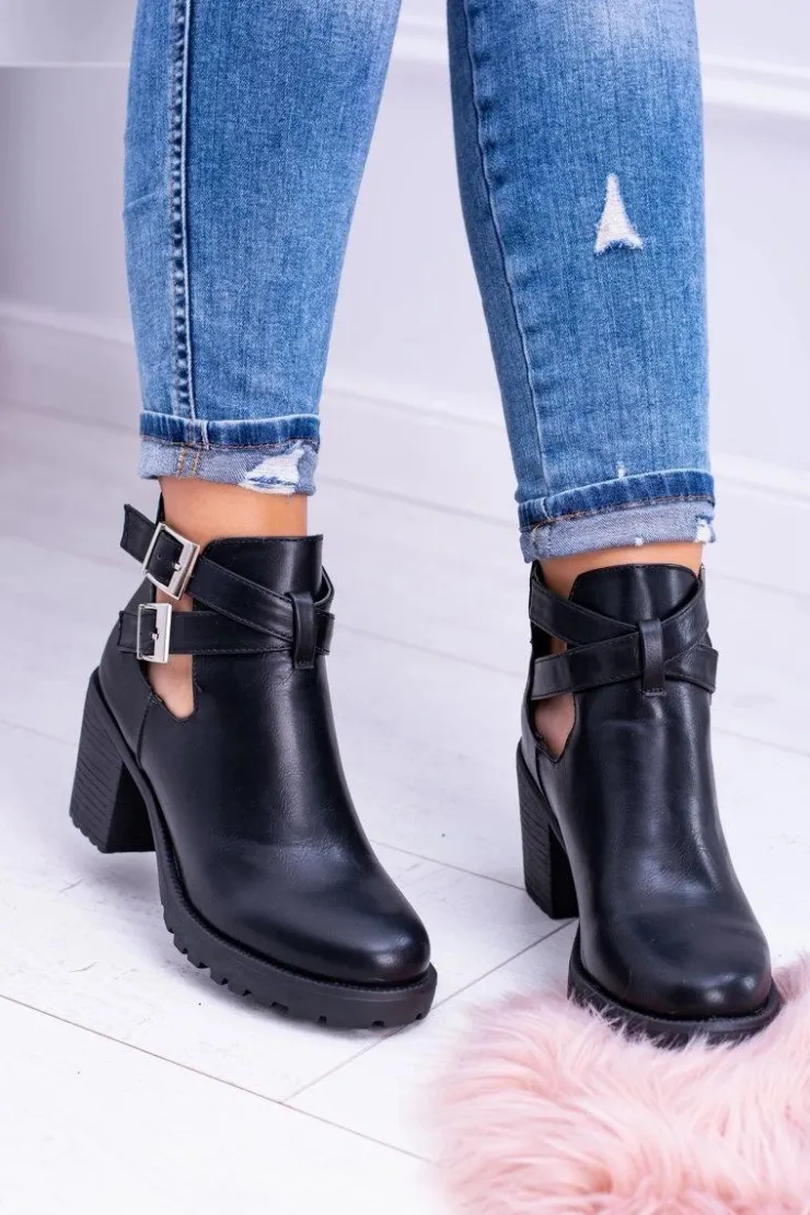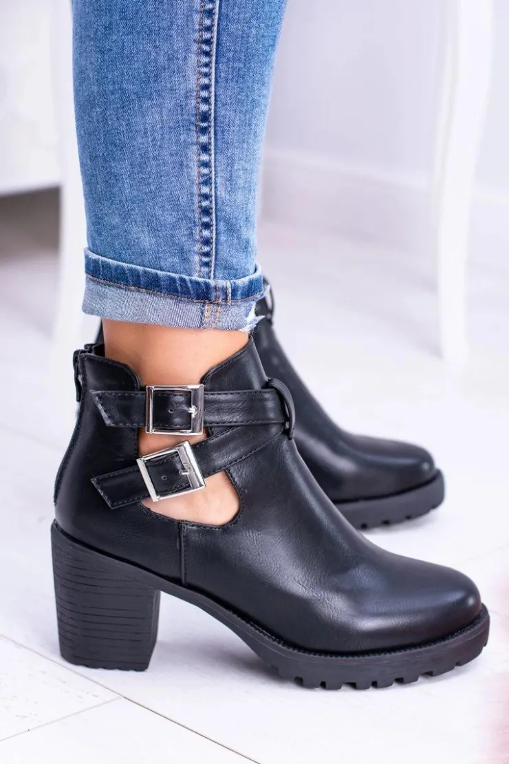 Jeśli chcesz zabłysnąć w świecie mody lub po prostu pokazać się z jak najlepszej strony, to właśnie te botki będą idealne dla Ciebie. Bardzo wyczekiwane przez wiele kobiet! Wyglądają bardzo efektownie, a srebrne klamry nadają mocnego, rockowego charakteru. Posiadają unikalny design – są w częściowo wykrojone. Wysoka, traktorowa podeszwa idealnie komponuje się z resztą obuwia. Nie czekaj dłużej i kup teraz póki jeszcze są dostępne!